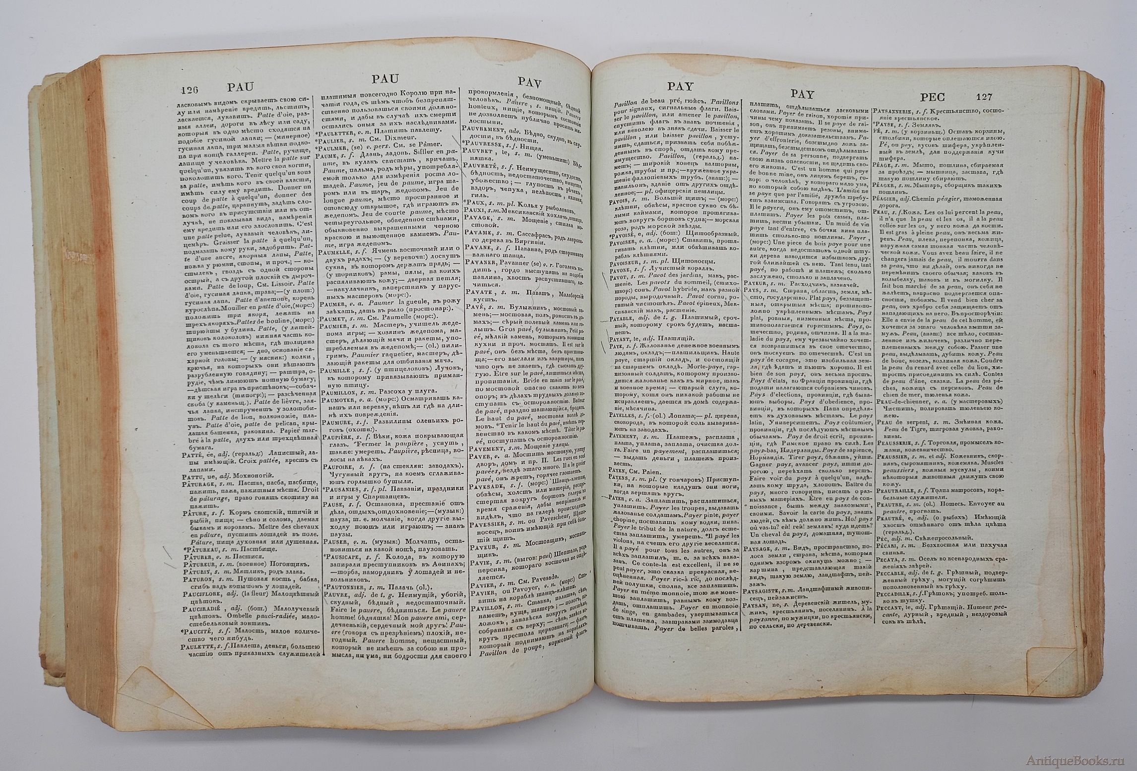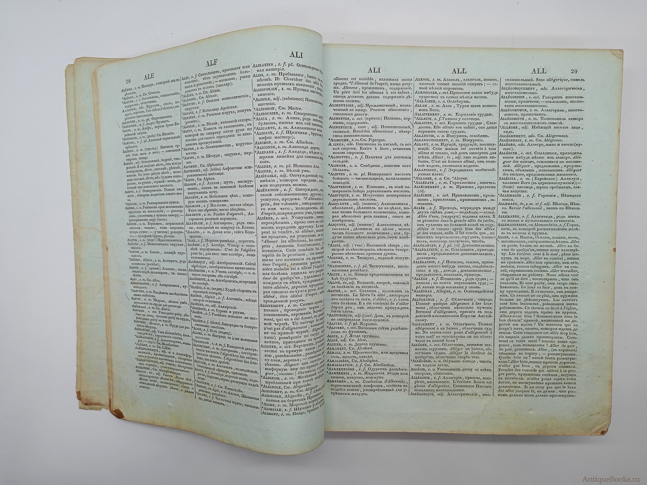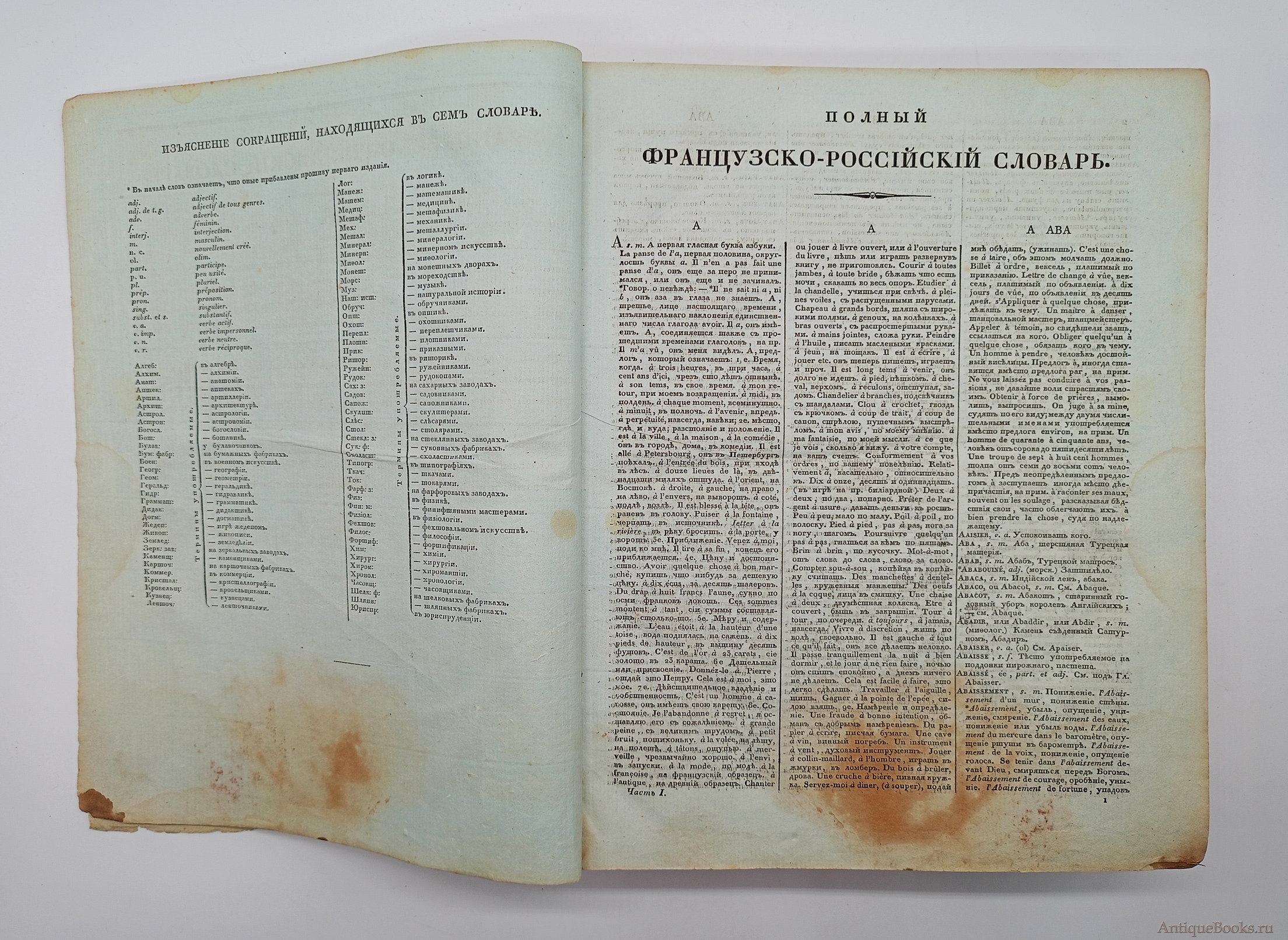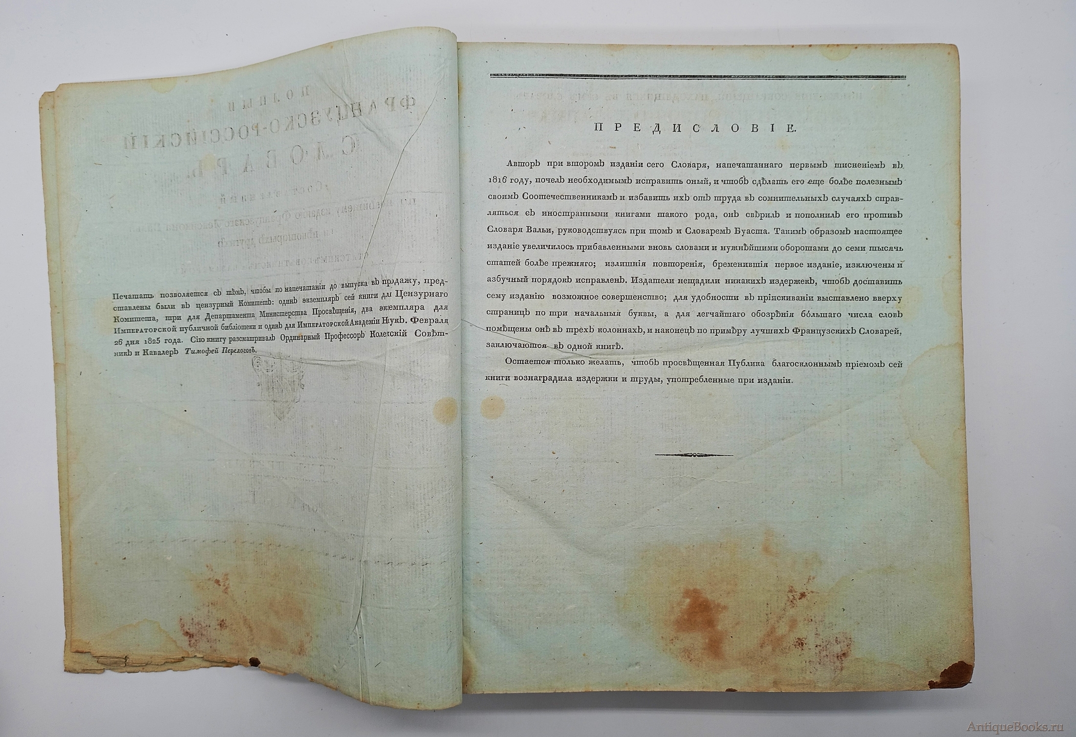 Фотографии предлагаемого издания "Полный французско-российский словарь. Том первый и второй". Иван Татищев. Москва, 1827 г