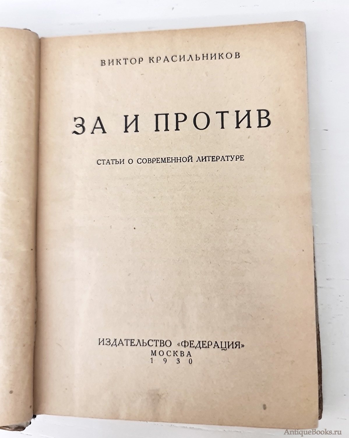 "За и против. Статьи о современной литературе" Красильников Виктор Москва, Издательство "Федерация", 1930 г.