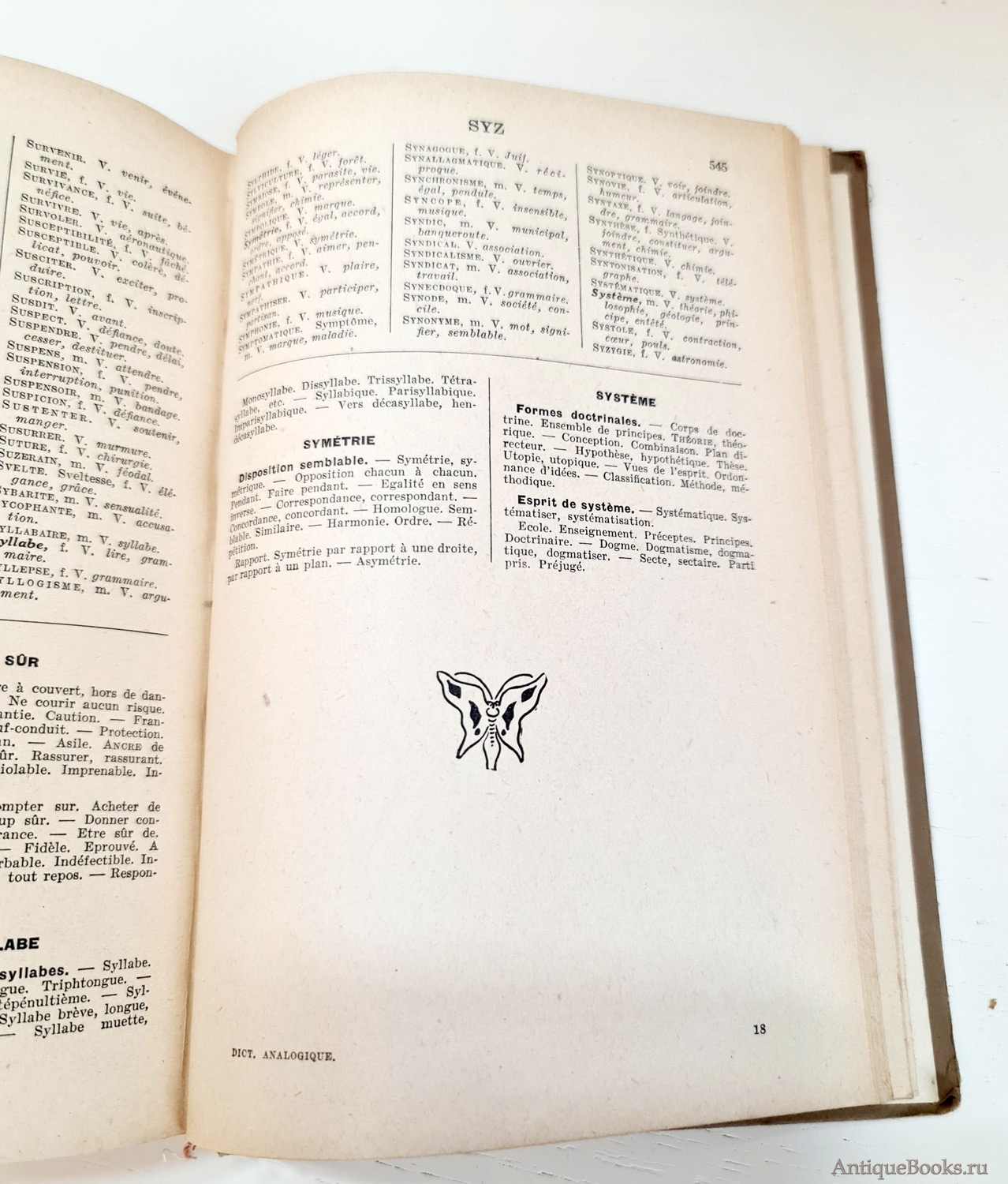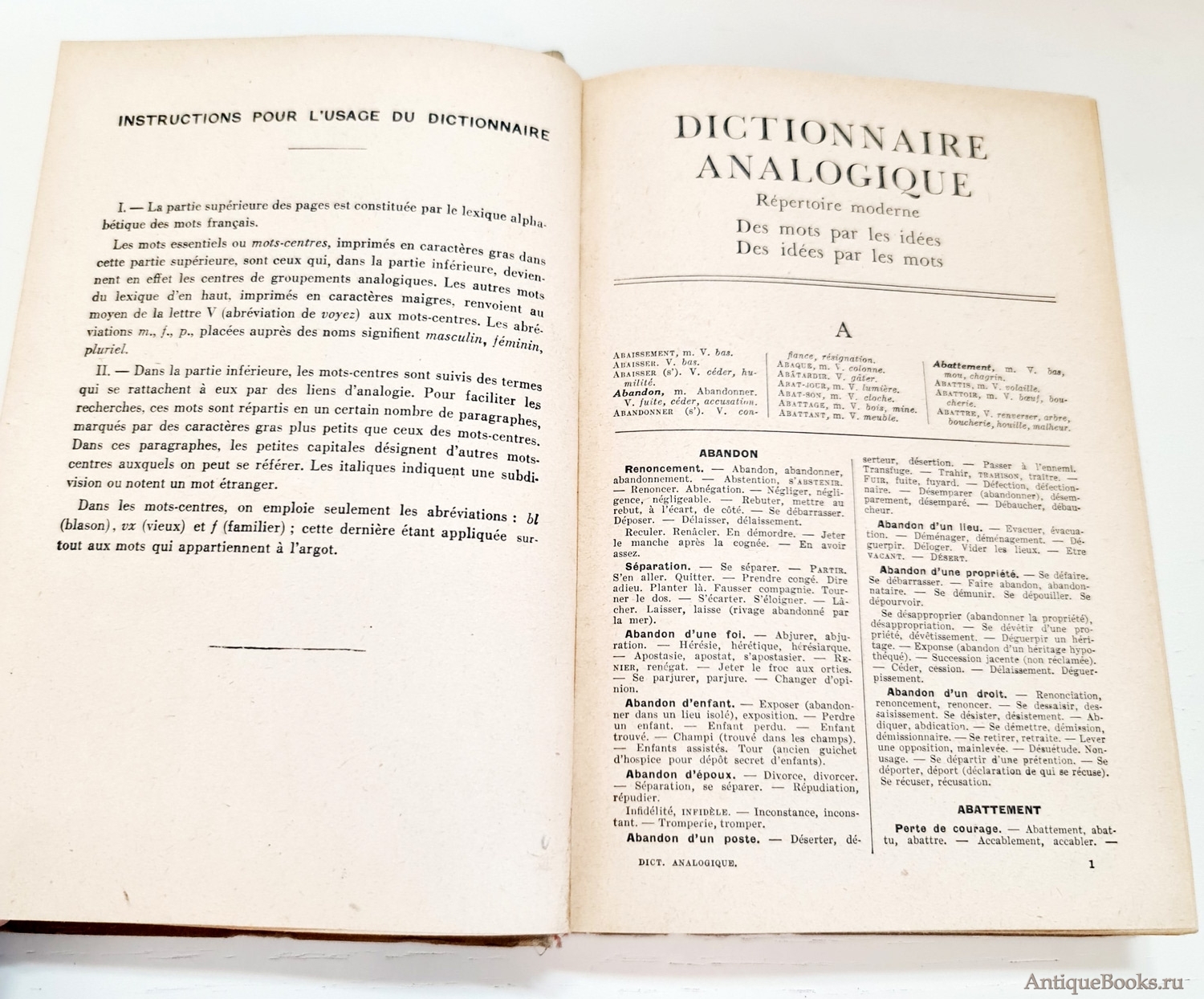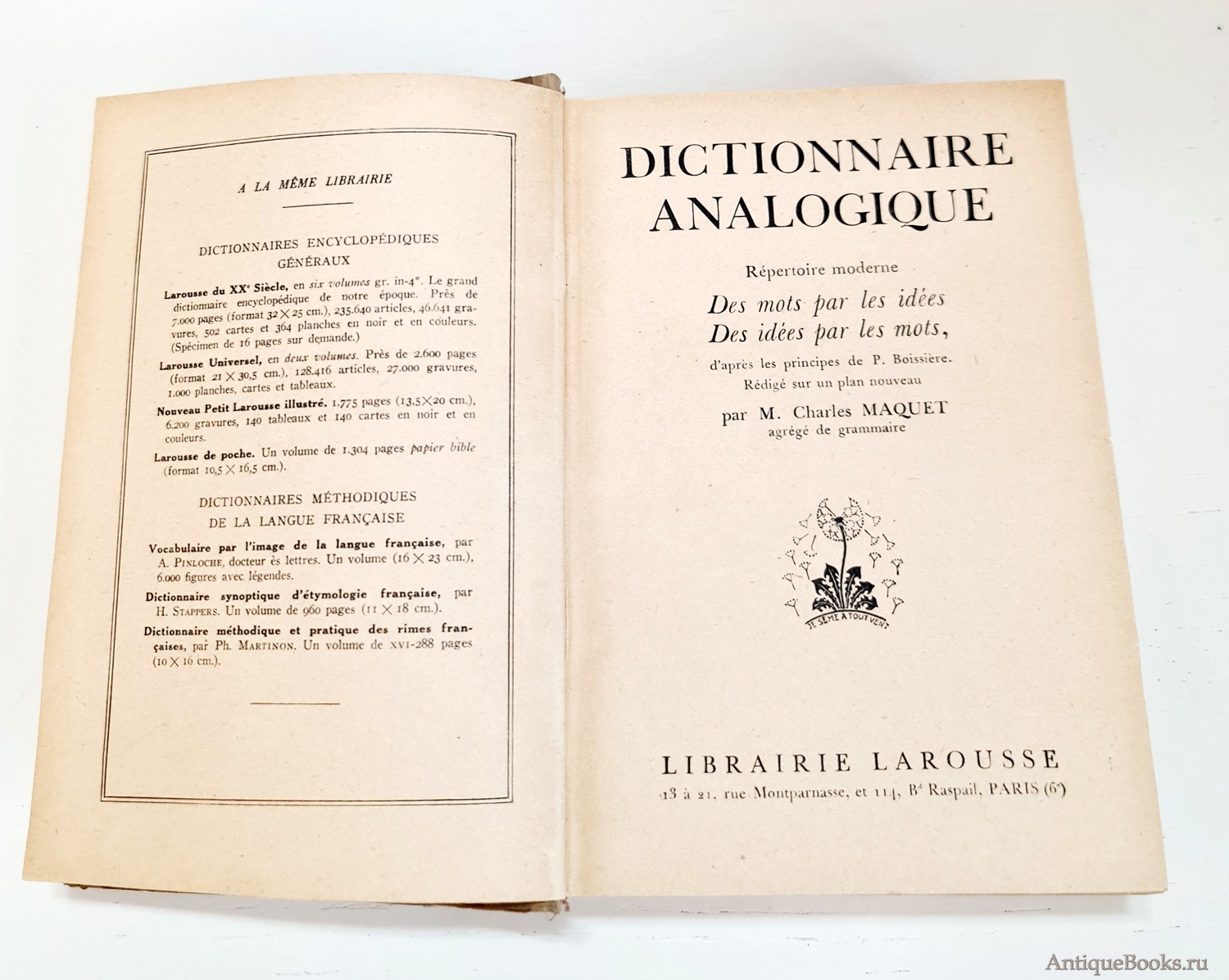 Фотографии предлагаемого издания "Аналоговый словарь современный справочник слов по идеям, идей по словам. (Dictionnaire analogique répertoire moderne des mots par les idées, des idées par les mots.". Par Charles Maquet. Paris, Larousse, 1936