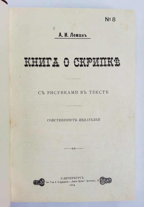 Фотографии издания "Книга о скрипке". А.И. Леман. С.-Петербург, тип. т-ва Суворина, 1914 г.
