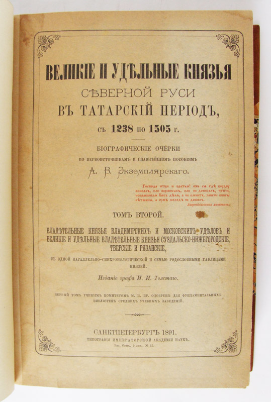 Фотографии издания "Великие и удельные князья Северной Руси в татарский период, с 1238 по 1505". А.В. Экземплярский. Издание графа И.И. Толстого. Типография Императорской Академии наук, 1889—1891 г.
