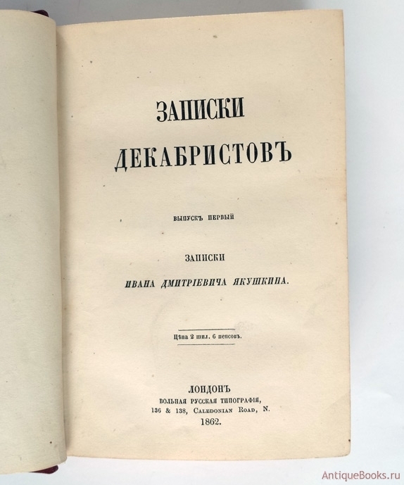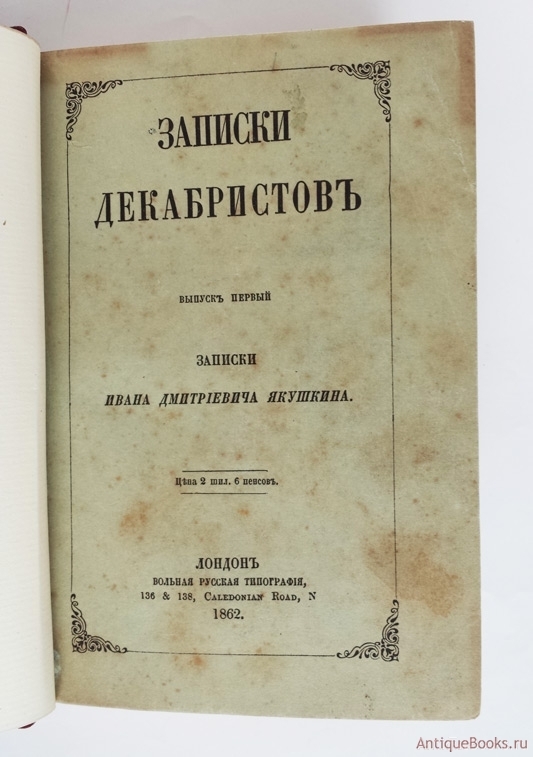 "Записки декабристов", Записки Ивана Дмитриевича Якушкина, Лондон: Вольная русская типография 1862-1863 г.