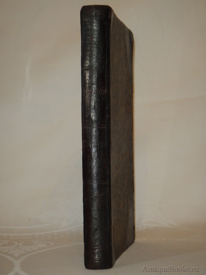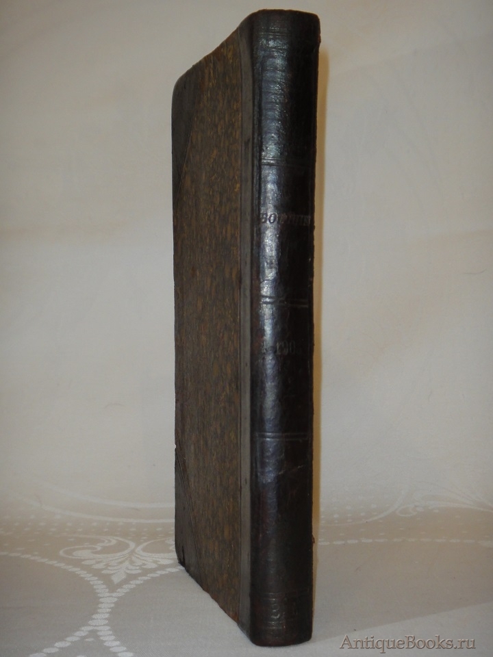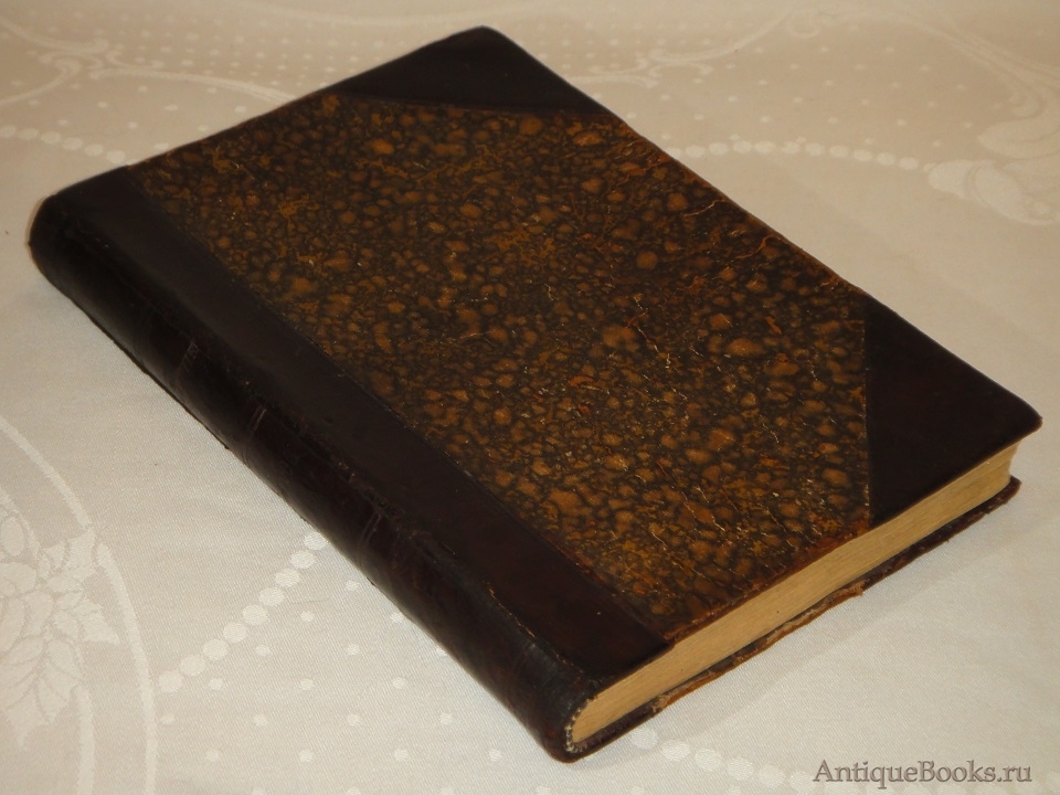 Экземпляр в добротном владельческом полукожаном переплёте эпохи с блинтовым тиснением на корешке. Крышки с большими углами оклеены бумагой под мрамор. Шёлковое ляссе.