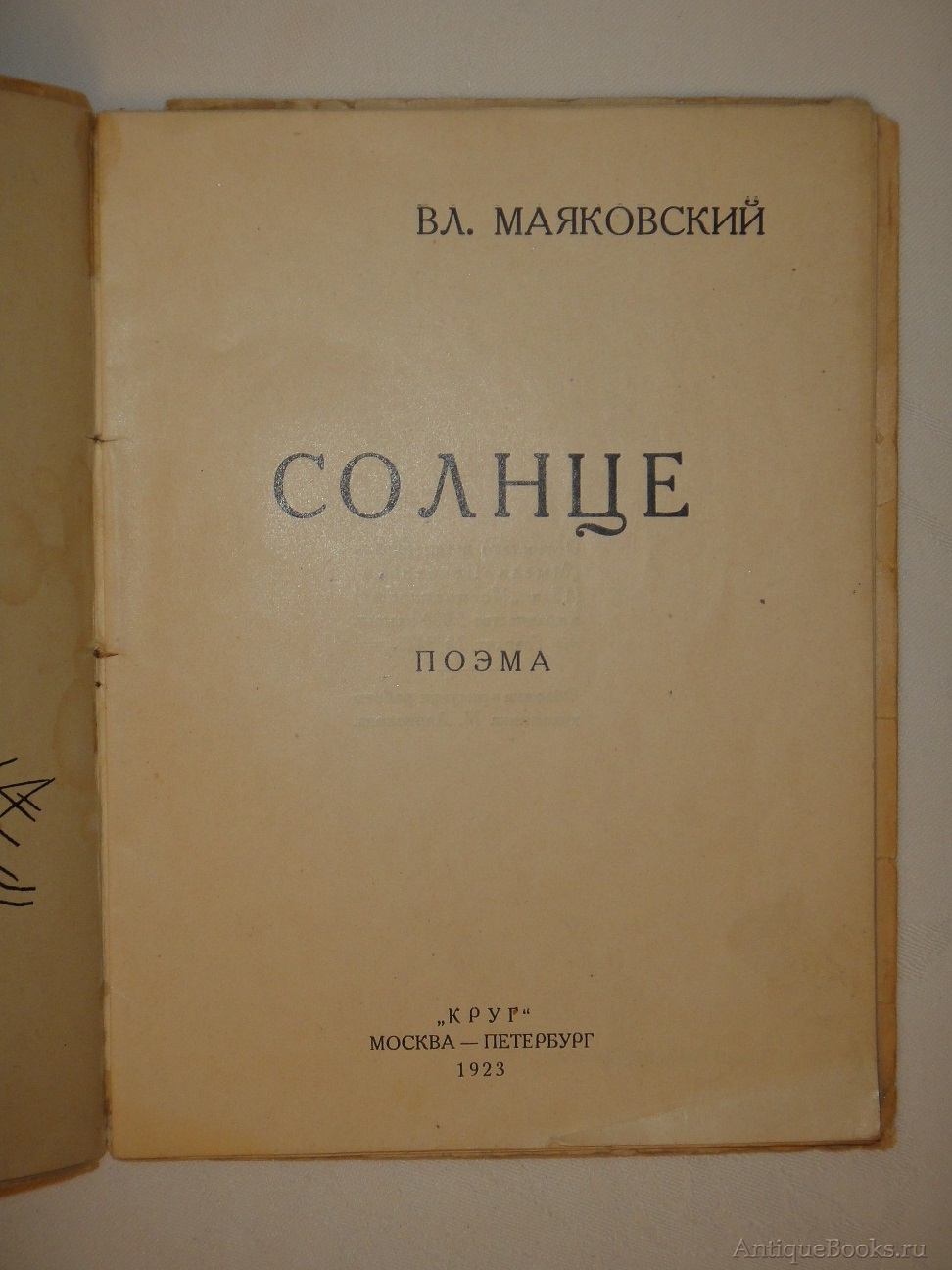" Солнце. Поэма " - Под таким заглавием издано стихотворение " Необычайное приключение, бывшее с Владимиром Маяковским летом на даче ".