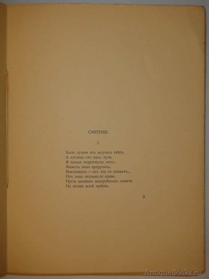 Сборник в мягких издательских шрифтовых обложках. Напечатан на плотной качественной бумаге и условно разделён автором на четыре больших раздела ( I. " Смятение " и др.; II. " Цветов и неживых вещей " и др.; III. " Вижу выцветший флаг над таможней " и др.; IV. " Как вплелась в мои тёмные косы " и др. ) и стихотворений из книги " Вечер ". Всего 82 произведения.