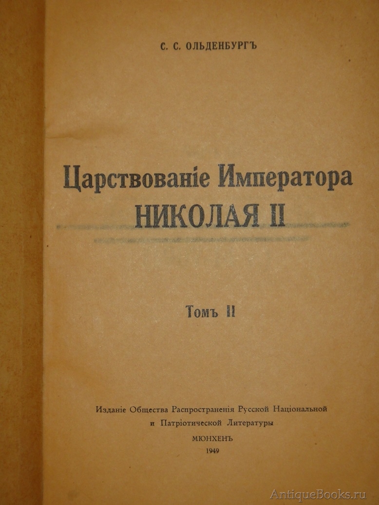 Фотографии предлагаемого издания "Царствование Императора Николая II. В двух томах, трёх книгах". С.С.Ольденбург. Белград-Мюнхен, Издание Общества Распространения Русской Национальной и Патриотической Литературы, 1939-1949гг.