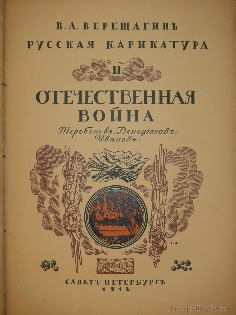 Том 2. Русская карикатура. Отечественная война. И.И.Теребенев, А.Г.Венецианов и И.А.Иванов. 1912. 180, (4) стр. С 46 иллюстрациями в тексте и 24 иллюстрациями на отдельных вклейках. Гравированный титульный лист работы Е.Е.Лансере, обложка работы А.Н.Лео.