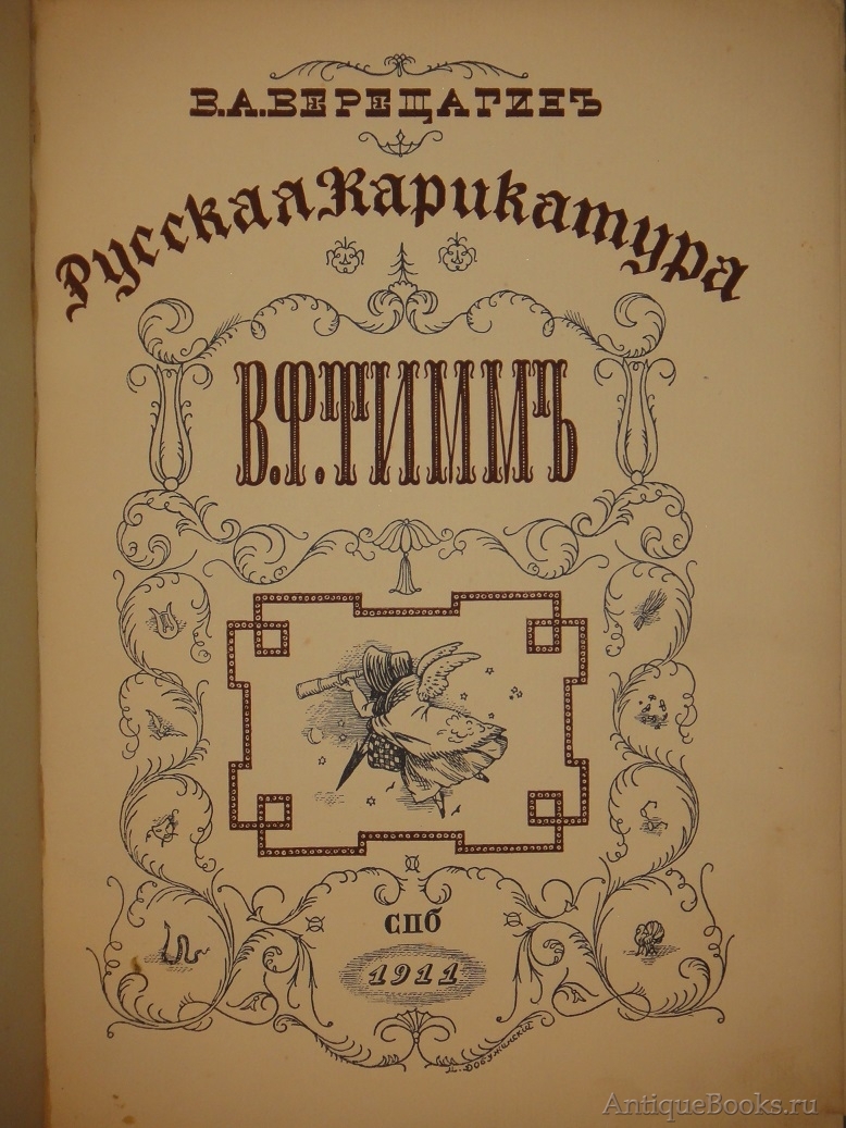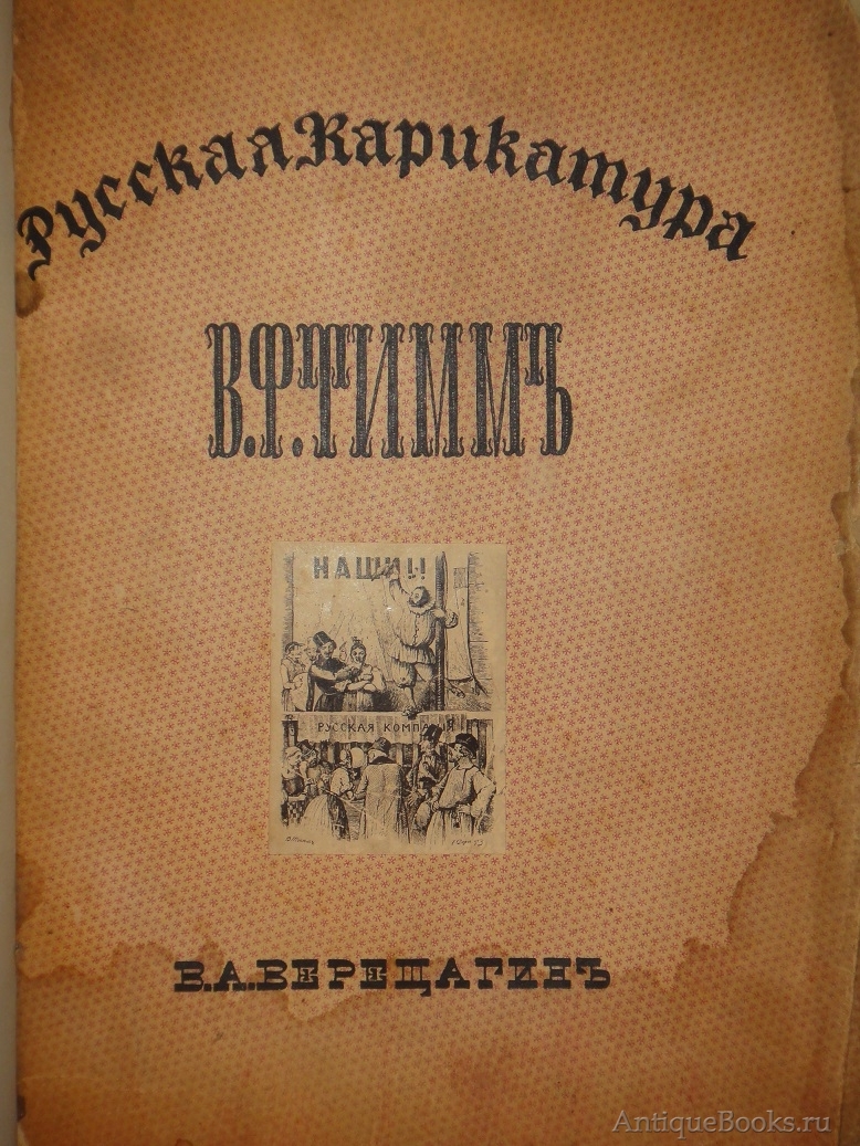 Том 1. Русская карикатура В.Ф.Тимм. 1911. 96, (4) стр. С 65 иллюстрациями в тексте и 9 иллюстрациями на отдельных вклейках. Гравированный титульный лист работы М.В.Добужинского. Виньетка на обложке В.Ф.Тимма.