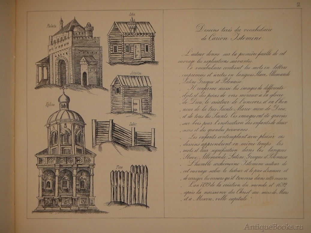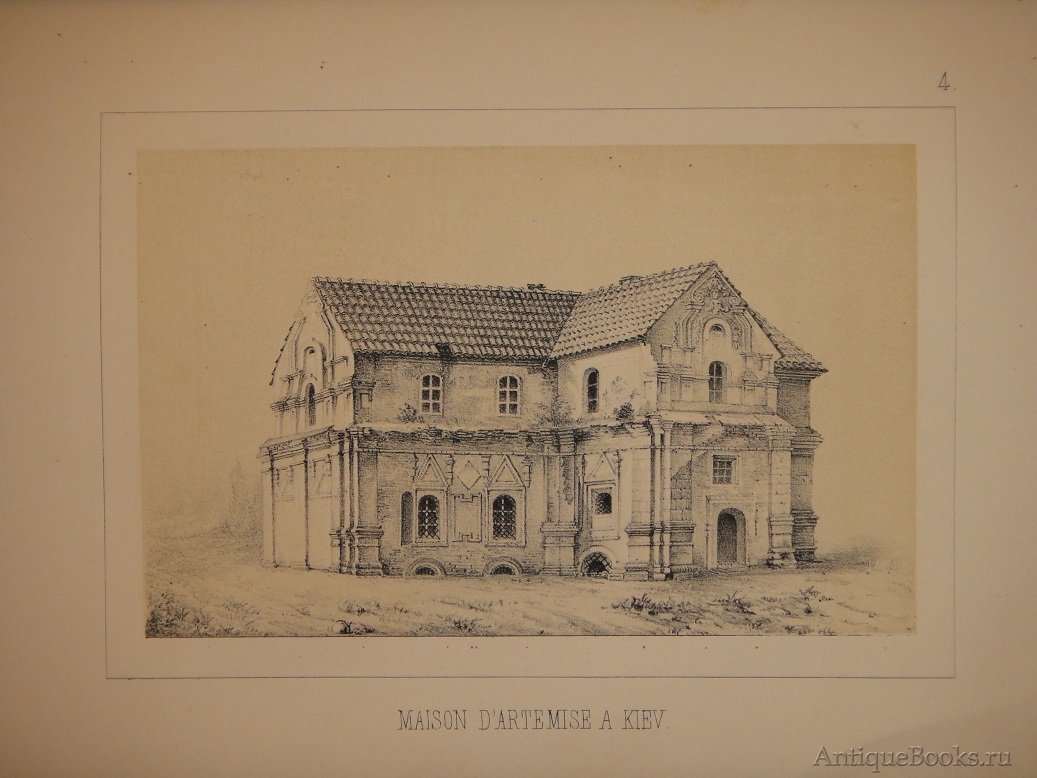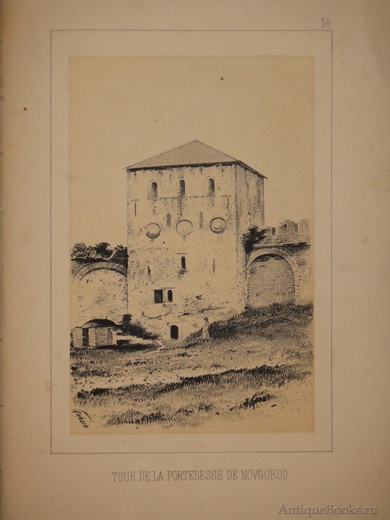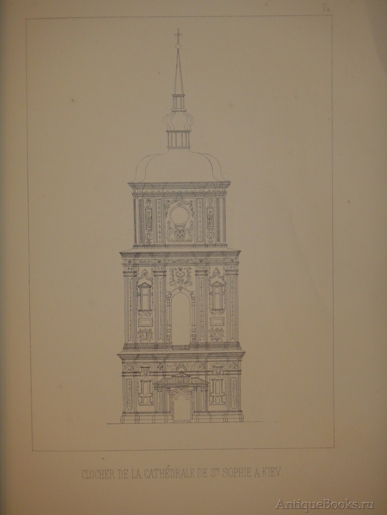 "Живописная история архитектуры в России с описанием климата, обычаев и развития цивилизации в этой стране. Histoire pittoresque de l'architecture en Russie suivie d'un aperqu sur le climat, les moeurs et le développement de la civilisation dans ce pays" Валериан Киприанов ( Valérien Kiprianoff ) St-Pétersbourg, À la librairie de la cour impériale ( S.Dufour ), 1864.