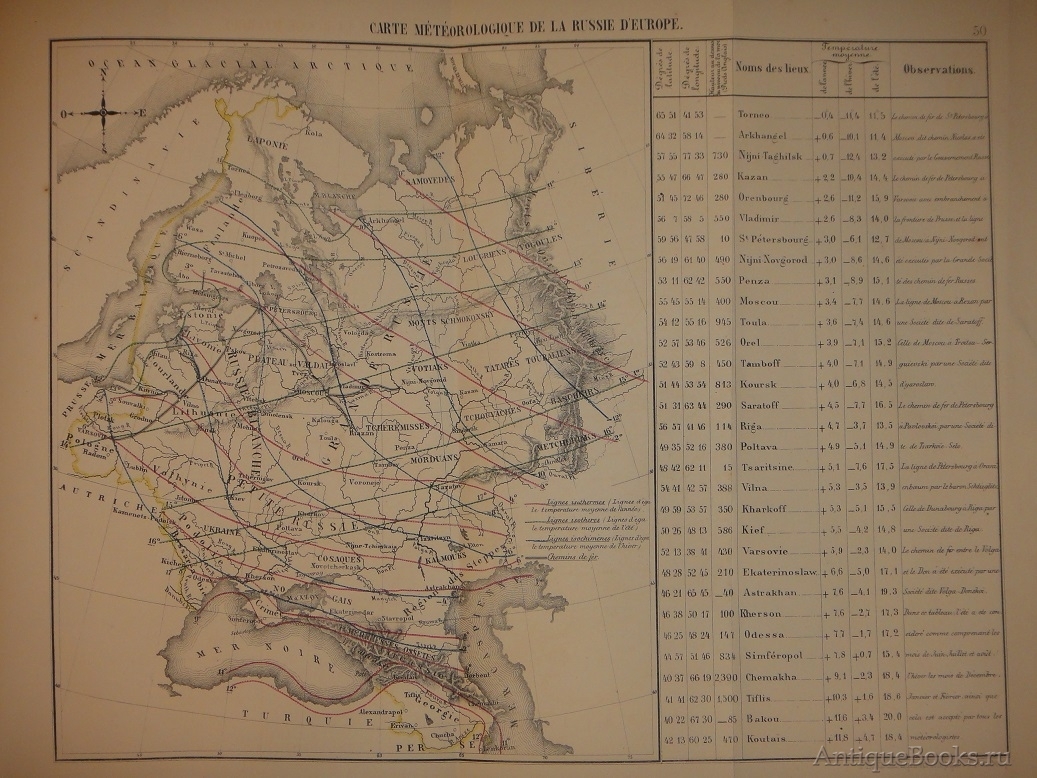 Издание напечатано на плотной высококачественной бумаге и украшено 56 литографированными иллюстрациями, планами и цветной разворотной метеорологической картой Европейской части России.