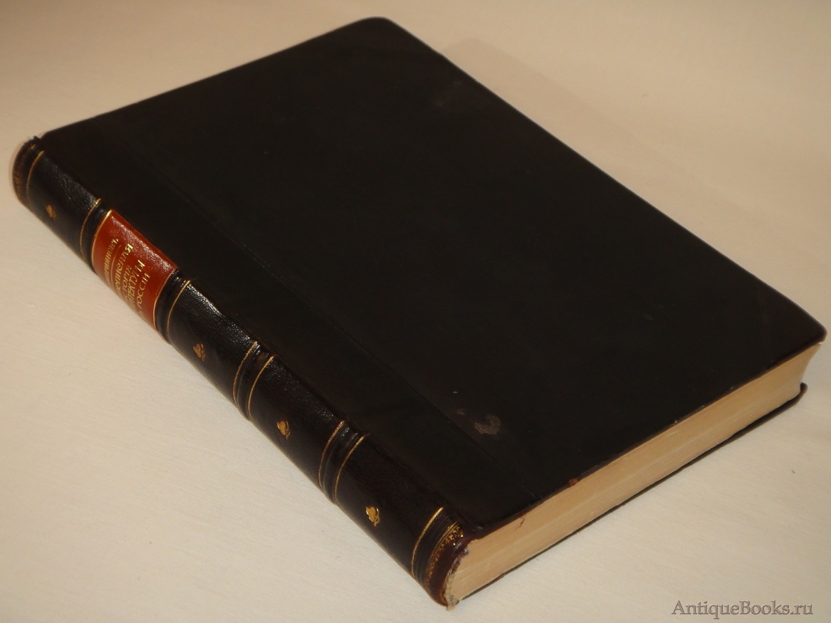 Экземпляр в старинном добротном полукожаном переплёте с золотым тиснением на бинтовом корешке и контрастной декоративной вставке. Крышки с углами оклеены чёрным коленкором. Цветные составные форзацы с цветочным орнаментом. Шёлковое ляссе.