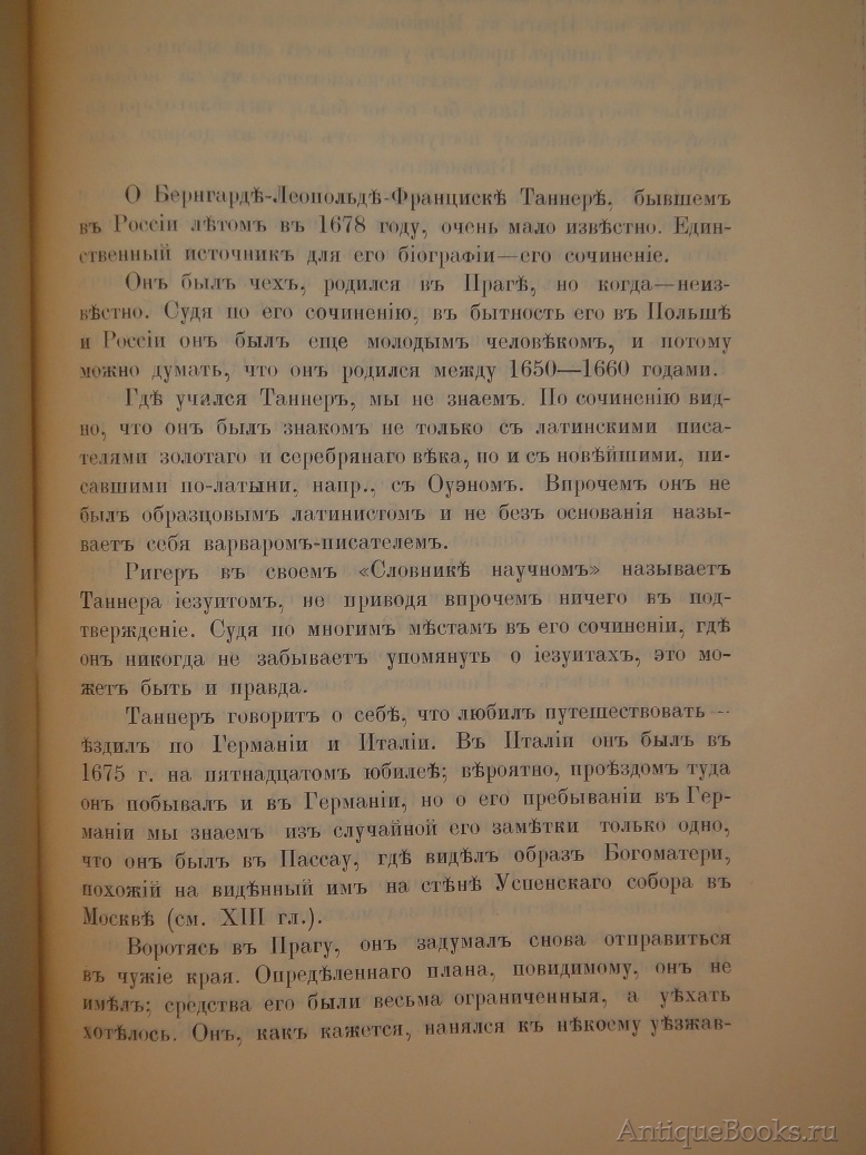 Бернгард Леопольд Франциск Таннер ( 1654-1715 ) - чешский путешественник-исследователь из Священной Римской империи, оставивший записки о путешествии в Москву в 1678 году. Находился на службе у князя Михаила Ежи Чарторыйского, с которым по указу и соизволению короля Польского и Речи Посполитой в 1678 году приехал в Москву ко двору царя Фёдора Алексеевича для переговоров о " вечном мире ". В Москве посольство пробыло почти три месяца. Переговоры шли трудно: срок Андрусовского перемирия подходил к концу, Россия вела тяжёлую войну с Турцией, а Речь Посполитая пыталась отстоять права на Киев и Смоленск. В это время Таннер имел возможность изучить Москву, её жителей и подружился с немцами из Немецкой слободы, а также начал говорить по-русски. Секретарь немецкой канцелярии приглашал Таннера на русскую службу, так как тот знал пять языков, но Таннер, прослышав, что с такой службы почти невозможно уйти, отказался. Когда наконец после долгих споров были согласованы и подписаны условия продления перемирия, посольство быстро выпроводили из Москвы, и оно отправилось в обратный путь, нагруженное, помимо прочего, деньгами, назначенными для компенсации завоёванных Россией земель.