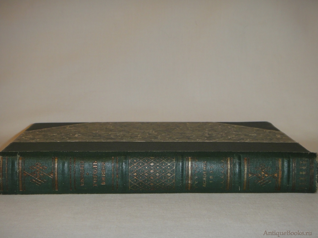 Экземпляр в составном издательском переплёте работы художника, плакатиста, графика, одного из ведущих отечественных мастеров экслибриса И.Ф.Рерберга. Коленкоровый бинтовой корешок украшен золотым орнаментальным тиснением. Крышки с большими углами оклеены бумагой под мрамор. Тонированная головка. Шёлковое ляссе.