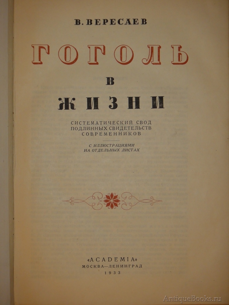 "Гоголь в жизни. Систематический свод подлинных свидетельств современников" В.Вересаев Москва-Ленинград, Издательство " Academia ", 1933г.