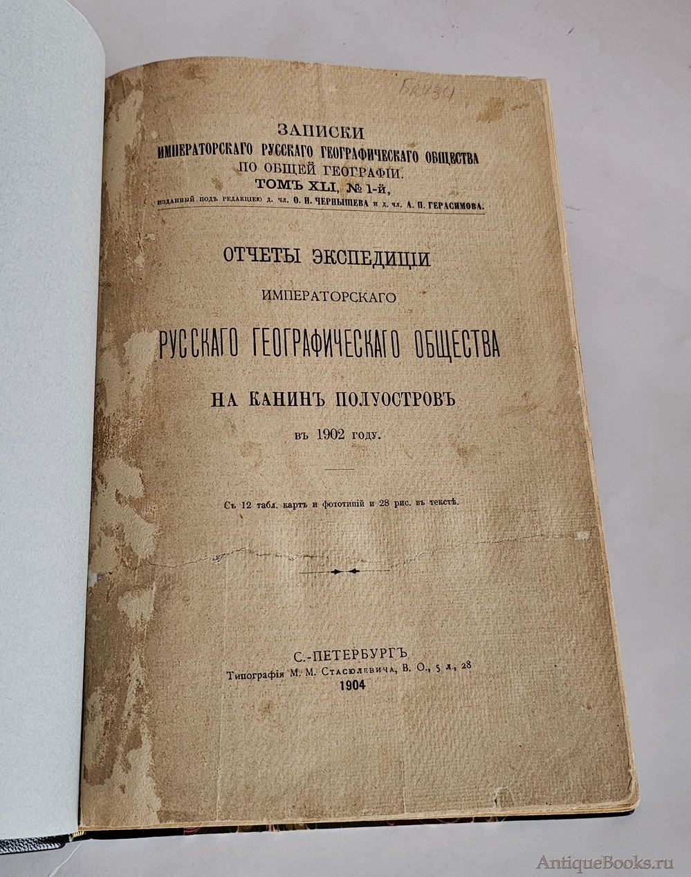 "Отчеты Экспедиции Русского географического общества на Канин полуостров в 1902 году" Санкт-Петербург, Тип. М.М. Стасюлевича, 1904 г.