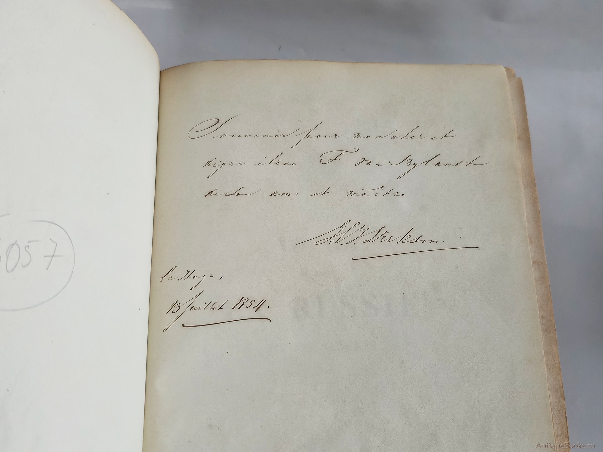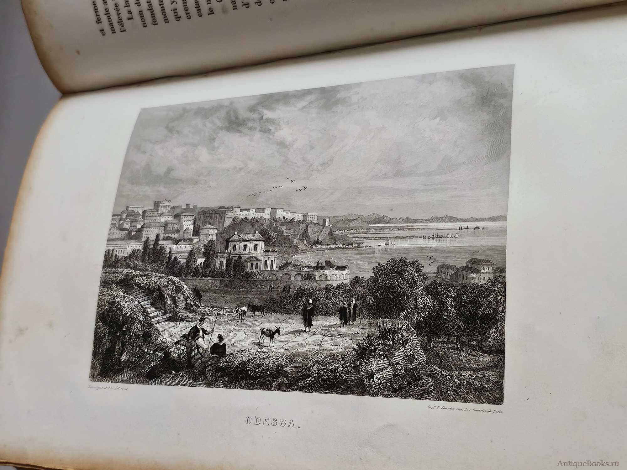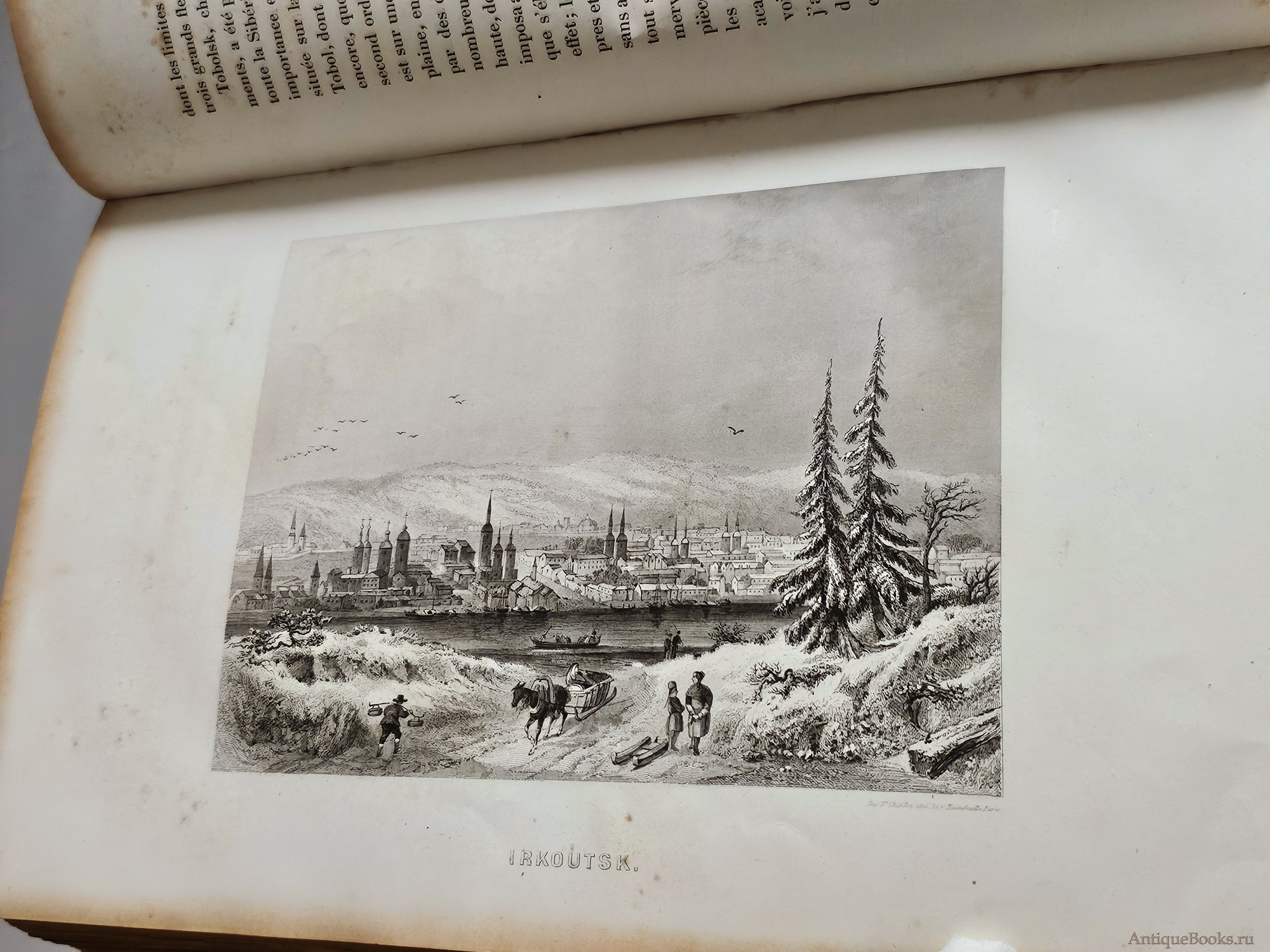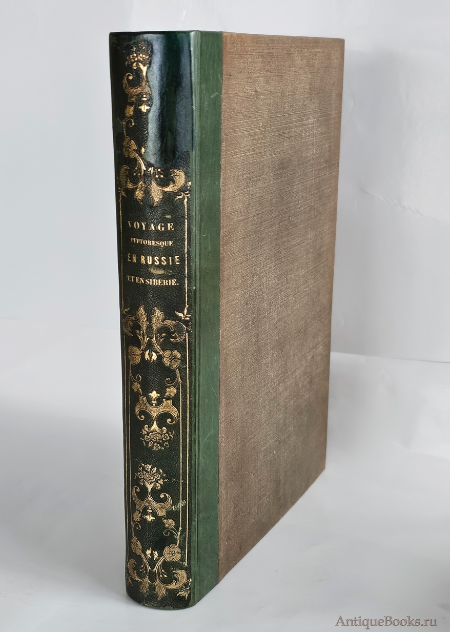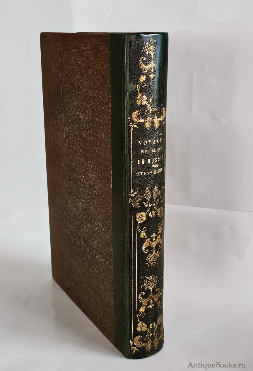 Титульная виньетка и 20 гравюр на стали работы Руарга, Оутвейта и Керно, включая 8 жанровых сцен с раскрашенными вручную костюмами. Первое издание этого знаменитого путевого очерка, от Санкт-Петербурга до Кавказа через Финляндию, Москву и Нижний Новгород, а затем путешествие из Санкт-Петербурга на Камчатку.