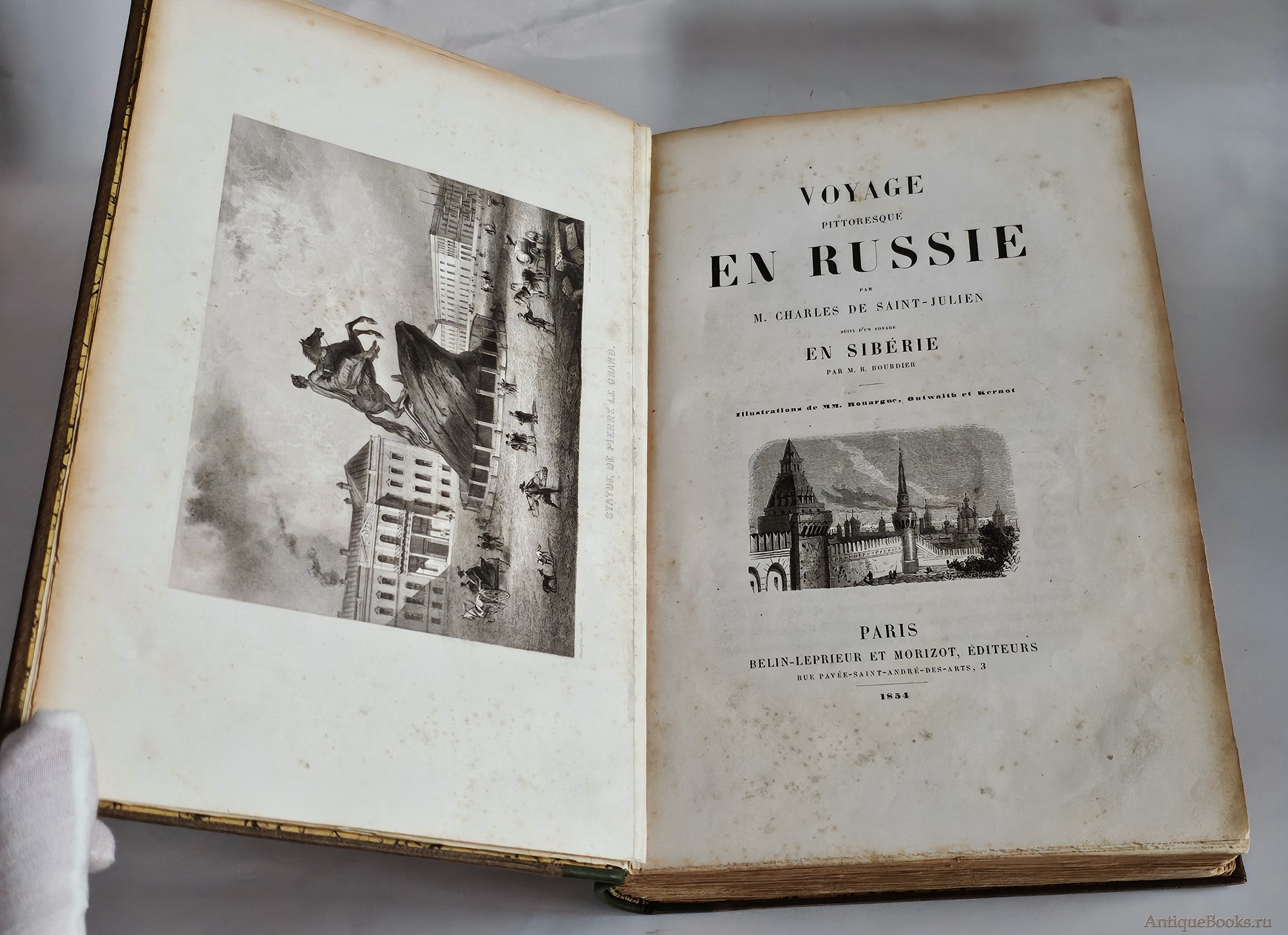 Шарль Сэн-Жульен (фр. Charles de Saint-Julien; 1802—1869) — французский писатель, поэт. Жил в России (1830 -1846). В 1851 году, вернувшись из Франции, он отправляется в большое путешествие по России, посещает Архангельск, Москву и Нижний Новгород, Казань и Астрахань, Кавказ и Крым, Сибирь и Камчатку. Цена: 65 000 руб.