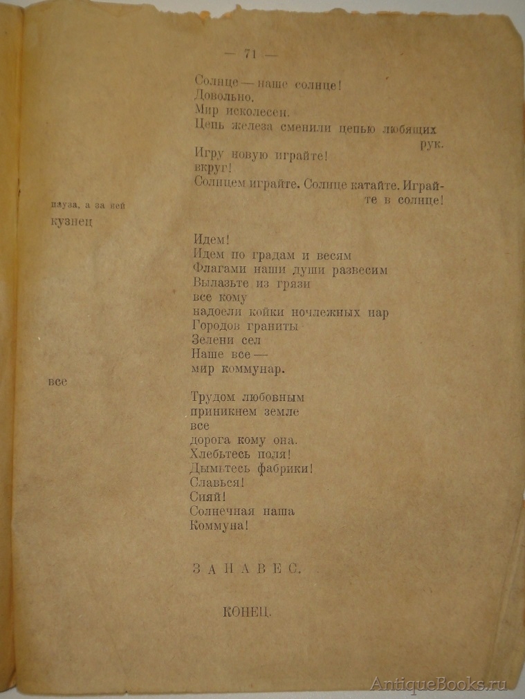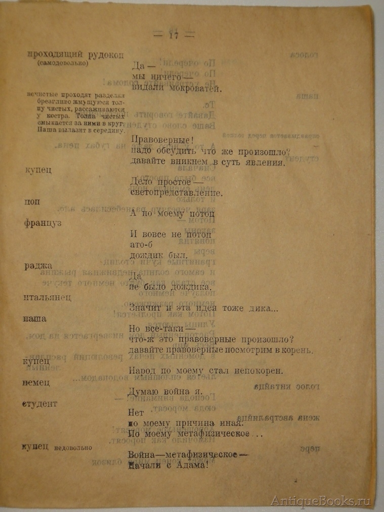 Откровенная антиклерикальная направленность произведения настроила против него большую часть профессиональных актёров. Труппа Александринского театра, в котором первоначально предполагалось поставить " Мистерию ", практически бойкотировала пьесу. После долгих перипетий для постановки было предоставлено здание Театра музыкальной драмы ( консерватории ), с чем администрация и сотрудники театра решительно не желали мириться, поэтому старались мешать, как могли. Даже книгу запретили продавать.
