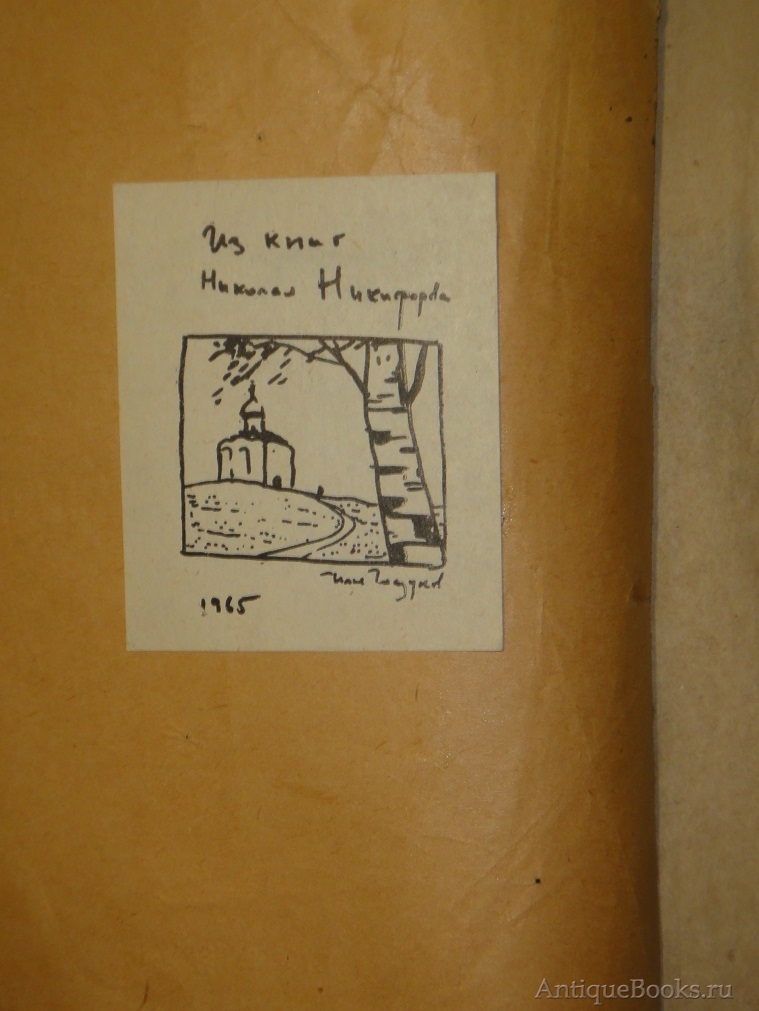 Провенанс: Книга ранее принадлежала Николаю Алексеевичу Никифорову-Бурлюку ( настоящая фамилия Никифоров; 1914-2003 ) - известному тамбовскому коллекционеру. Об этом свидетельствует его владельческий сюжетный экслибрис работы художника Ильи Глазунова на внутренней сторонке передней обложки. Основатель и президент Международной Академии Зауми, доктор культурологии С.Е.Бирюков вспоминал о Никифорове в связи с Бурлюком: " И действительно подлинная история - это дружба с Давидом Бурлюком, с которым его познакомил, вероятно, Кручёных. И Николай Алексеевич настолько понравился Бурлюку, что тот тут же решил его усыновить! Бурлюк слал в Тамбов оригиналы своих работ, журналы, связал Никифорова с художником Рокуэлом Кентом, который тоже стал ему посылать свою графику. Никифоров стимулировал работу Бурлюка-портретиста, он посылал ему карточки своих возлюбленных, а Бурлюк в ответ - портреты маслом. Бурлючью коллекцию Никифорова я видел собственными глазами, он, зная мой интерес к футуристам, - допустил! Бурлюка он именовал папой. Позднее заказал визитку с надписью « Никифоров-Бурлюк » ".