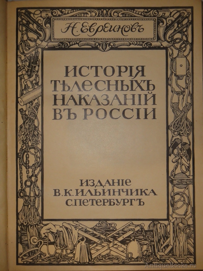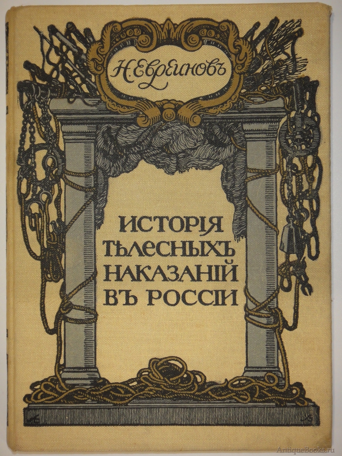 "История телесных наказаний в России" Н.Евреинов С.-Петербург, Типография Морского Министерства в Главном Адмиралтействе, 1913г. ( год издания на титульном листе не обозначен; определён по данным РГБ ).