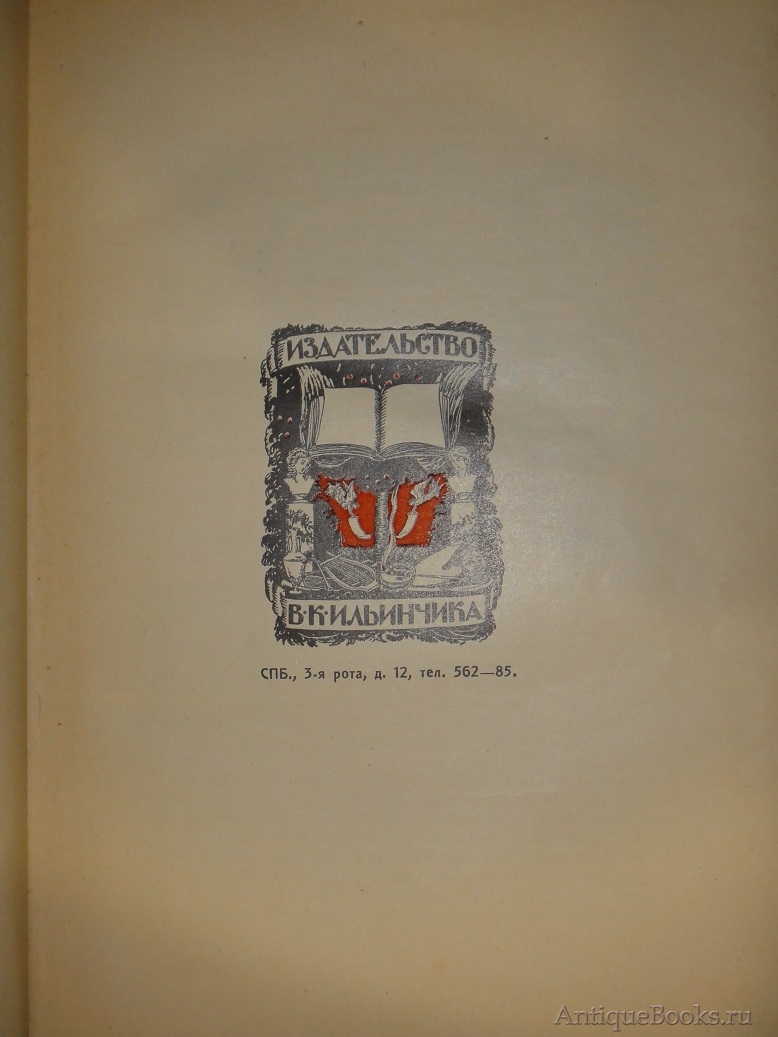 Экземпляр в роскошном издательском тканевом переплёте. На крышках - рисунок-набивка с глубоким высокохудожественным цветным тиснением. Оригинальные составные форзацы оклеены бумагой с красочным узором. Тонированная головка. Шёлковое ляссе.