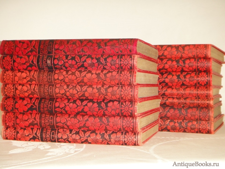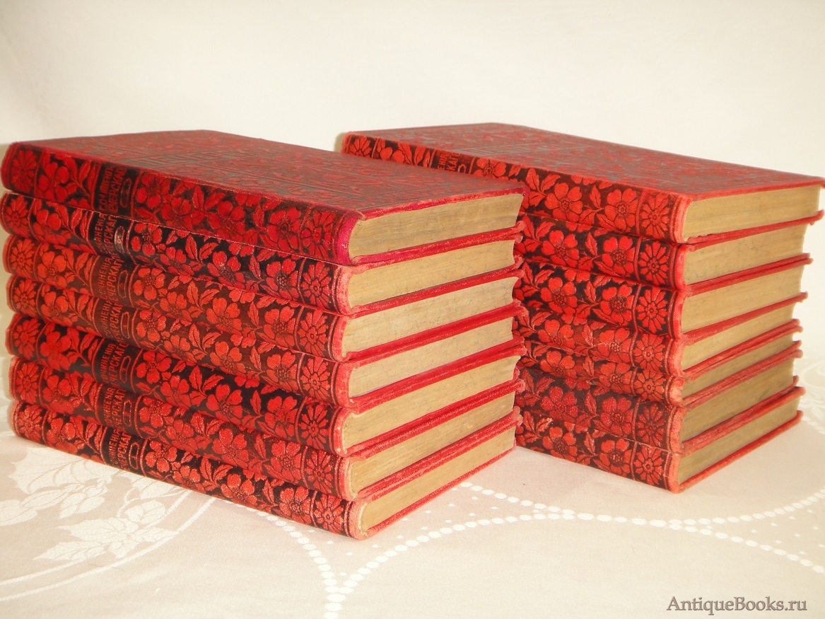 Экземпляр в оригинальных издательских переплётах с великолепным цветным и конгревным тиснением на корешках и крышках. Художественно оформленные составные форзацы на особой плотной бумаге. Мраморный обрез.
