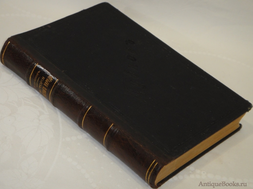Экземпляр в красивом стильном полукожаном переплёте эпохи с золотым тиснением на бинтовом корешке. Крышки оклеены чёрным коленкором и обрамлены декоративными линейными рамками. Цветные составные форзацы. Шёлковое ляссе.