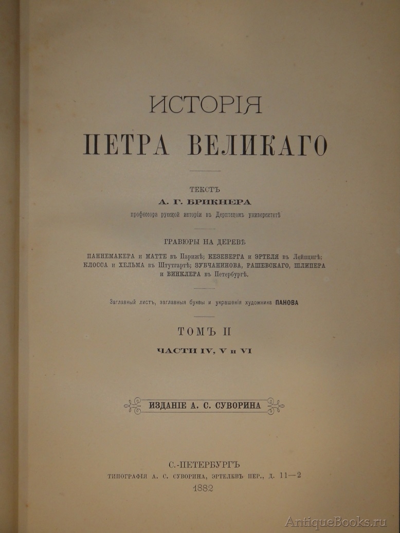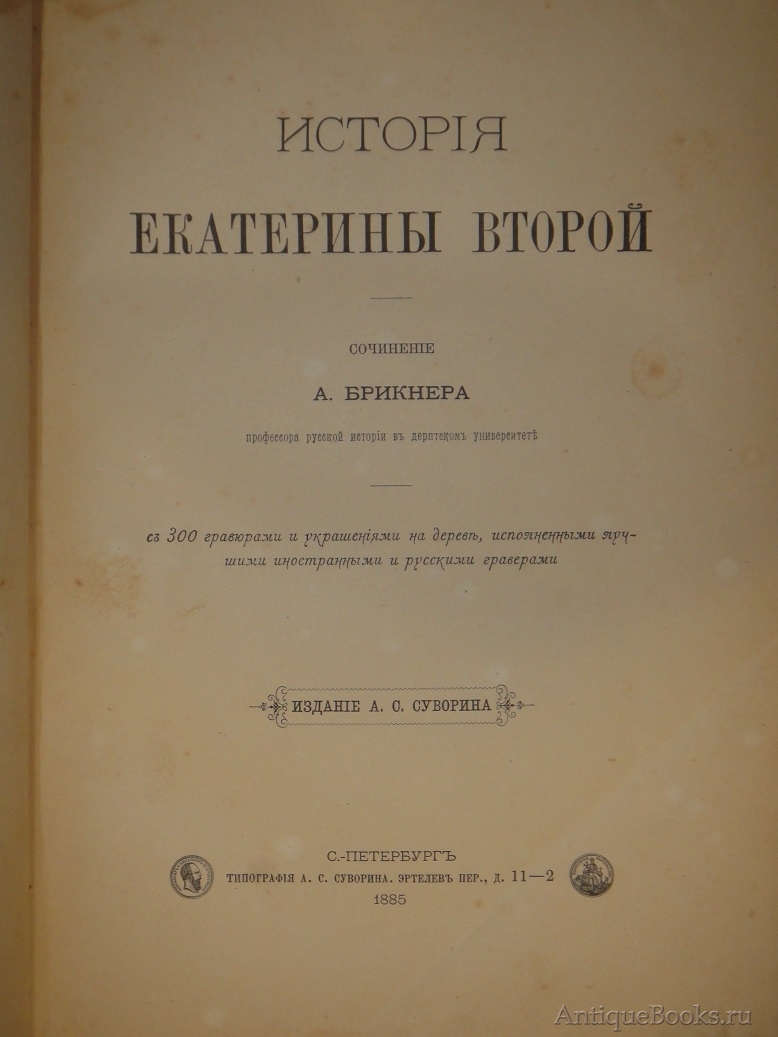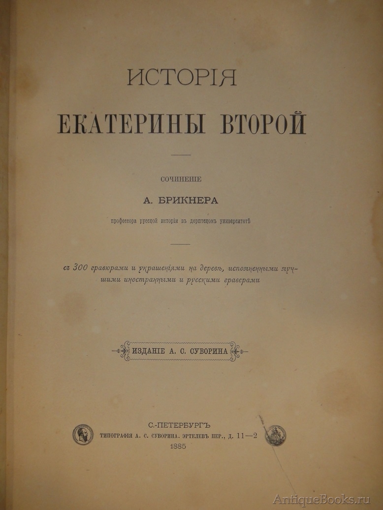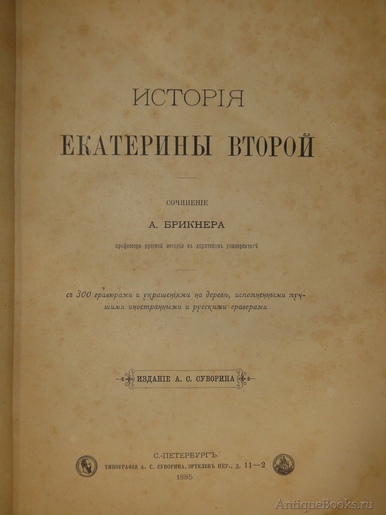 "Две позиции: История Петра Великого и Иллюстрированная история Екатерины II" А.Г.Брикнер С.-Петербург, Издание А.С.Суворина, 1882,1885 г.