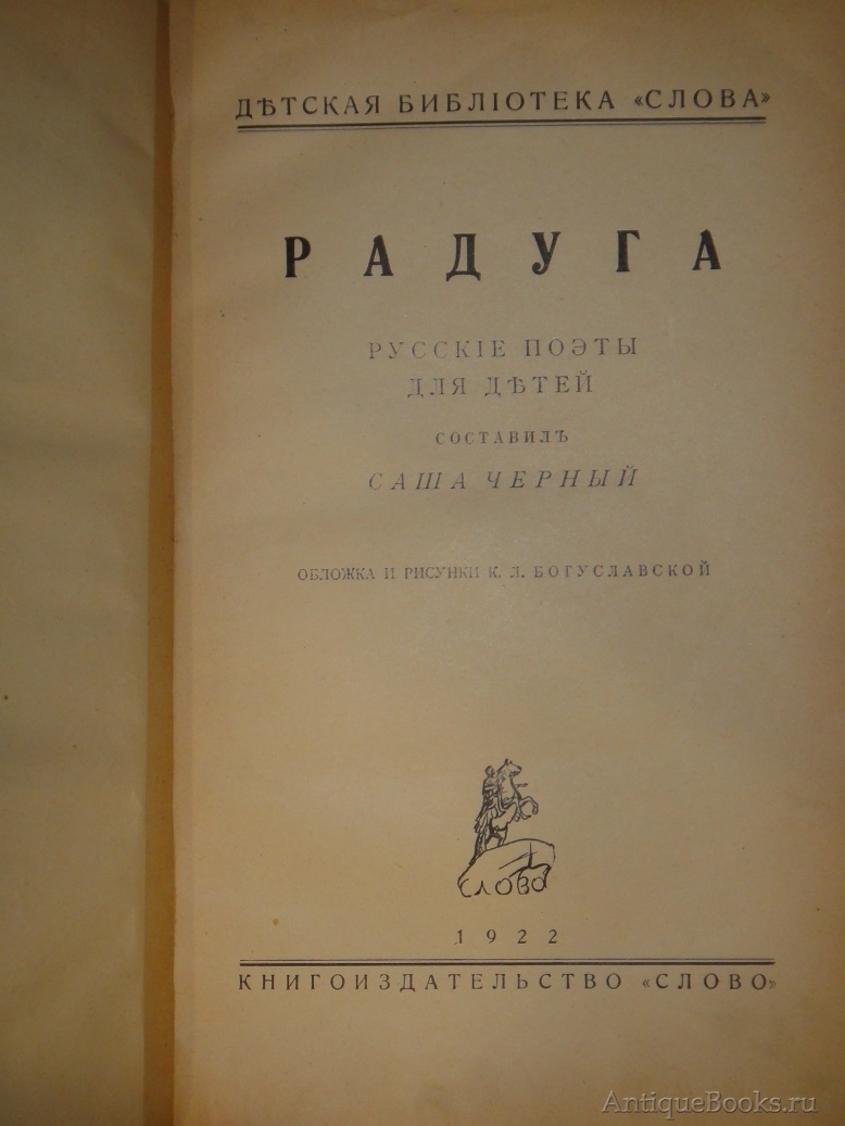 "Радуга. Русские поэты для детей" Составил Саша Чёрный Берлин, Книгоиздательство " Слово ", 1922г.