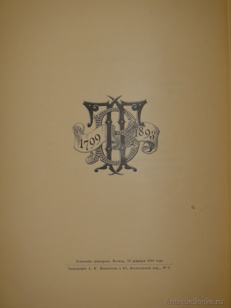 "Евгений Онегин" А.С. Пушкин Москва, Типография А.И.Мамонтова и К°, 1893 г.