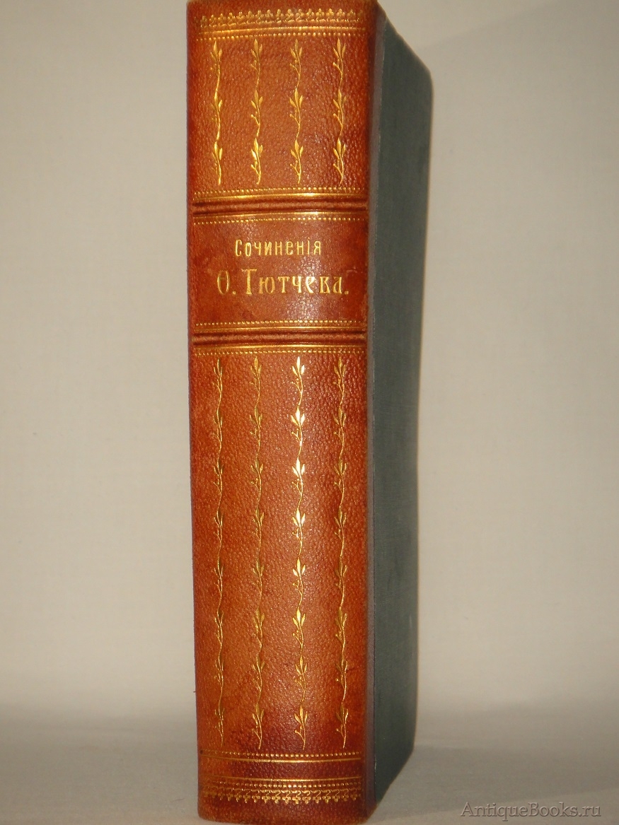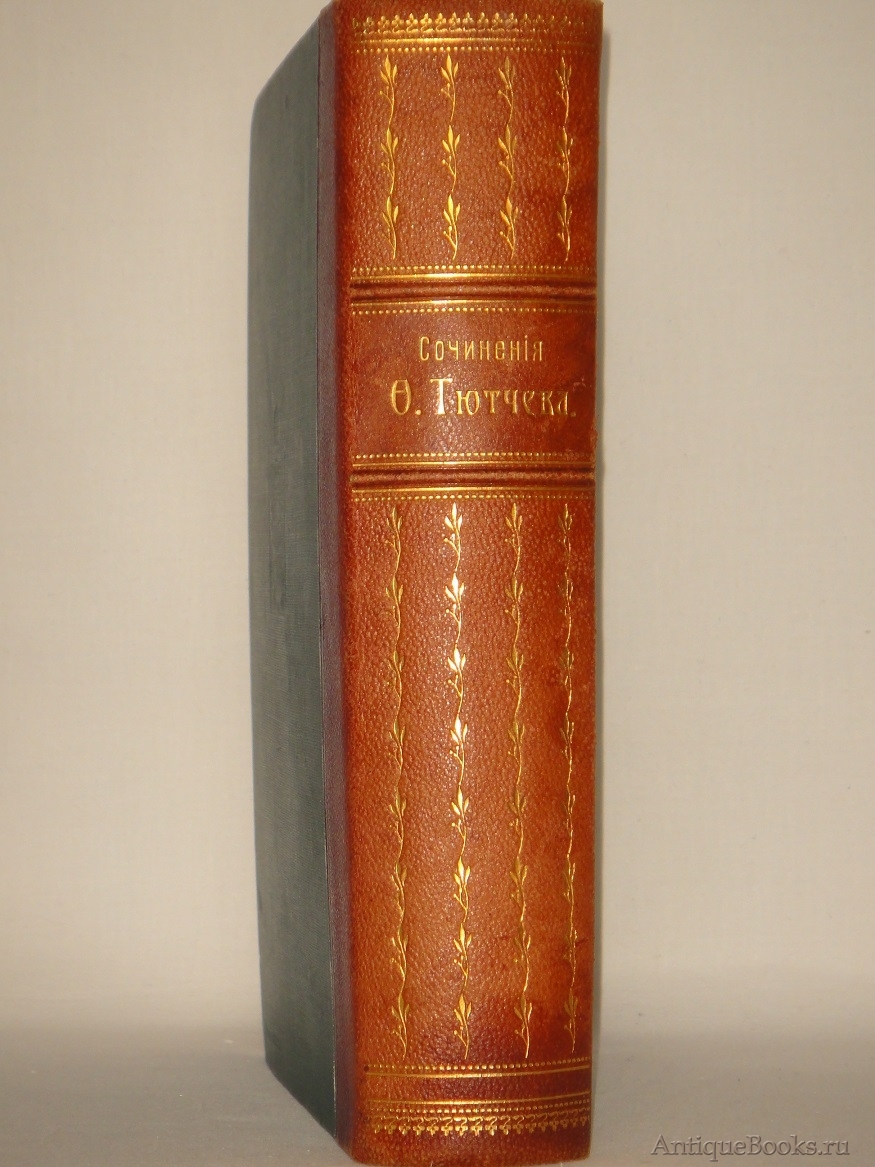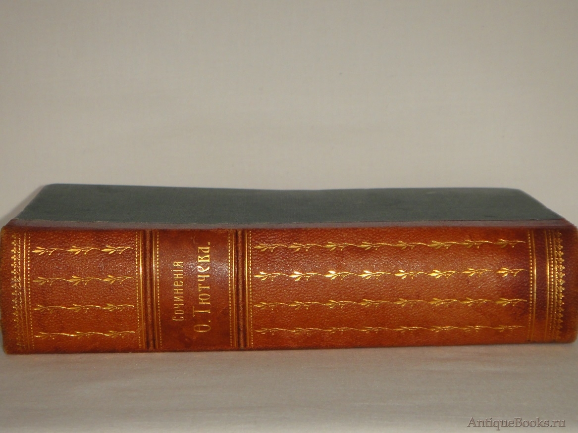 Экземпляр в роскошном полукожаном переплёте эпохи с золотым орнаментальным художественным тиснением на корешке. Крышки оклеены тёмно-зелёным коленкором: на передней, чёрной краской, имя автора - «Ѳ.И.Тютчевъ»; на задней - фирменный знак издательства, тиснёный глубоким блинтом.