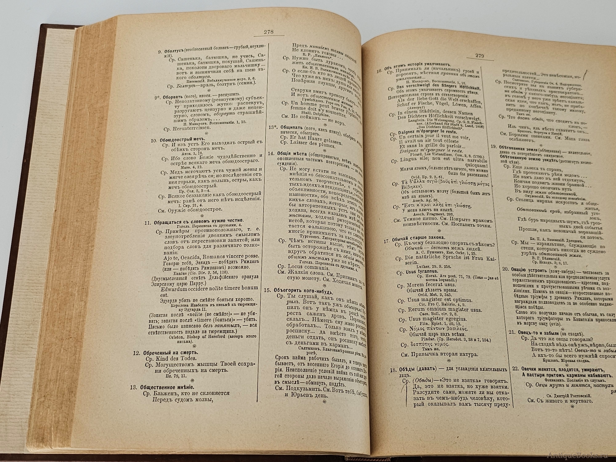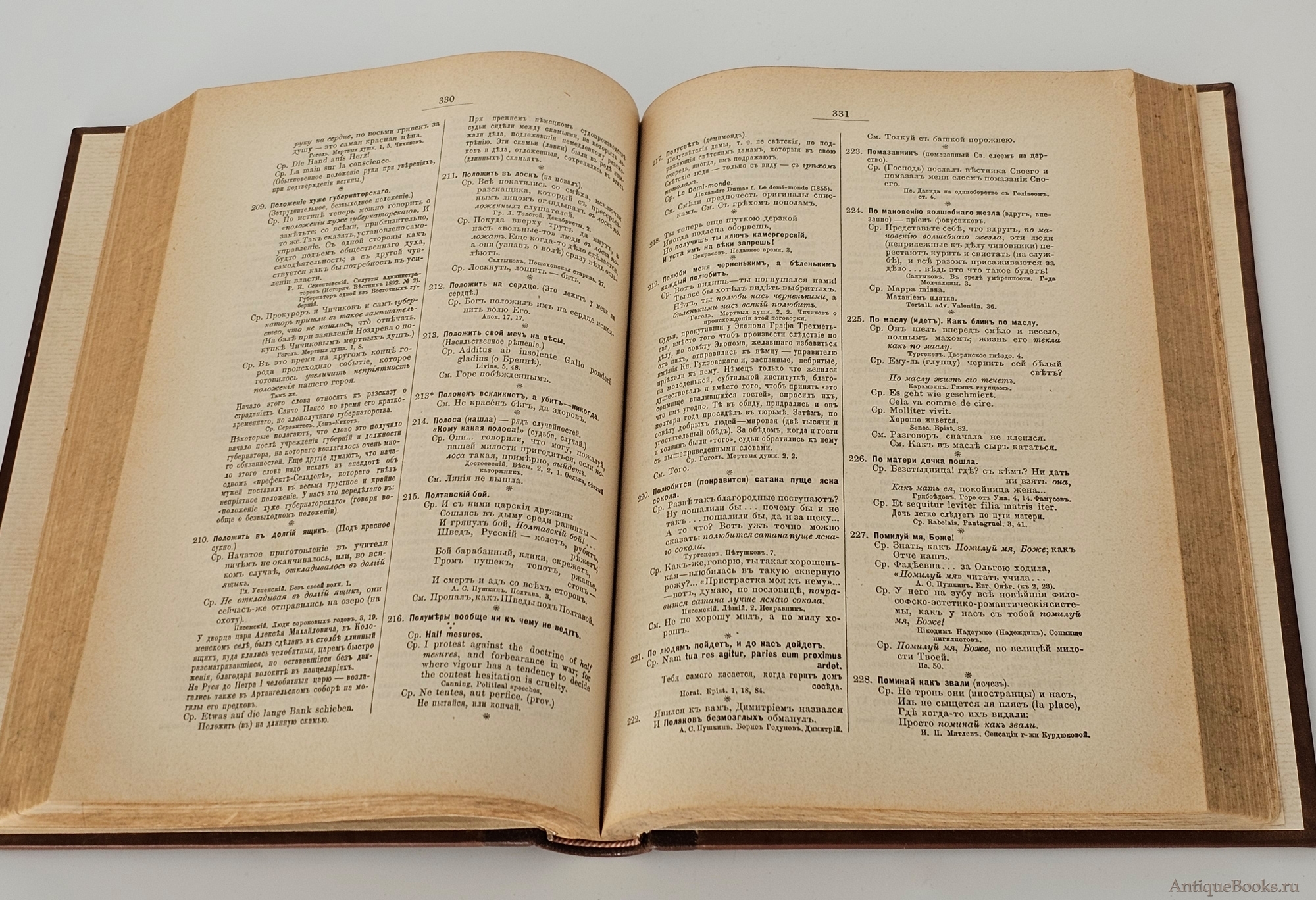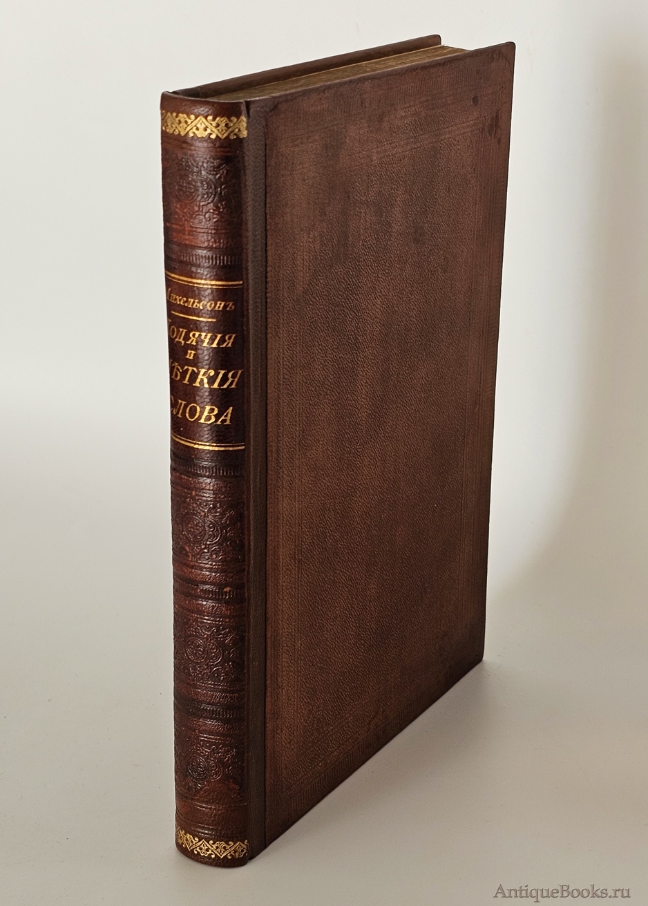 Фотографии предлагаемого издания "Ходячие и меткие слова. Сборник русских и иностранных цитат, пословиц, поговорок, пословичных выражений и отдельных слов (иносказаний)". М.И. Михельсон. С.-Петербург, типография Императорской Академии Наук, 1896 г.