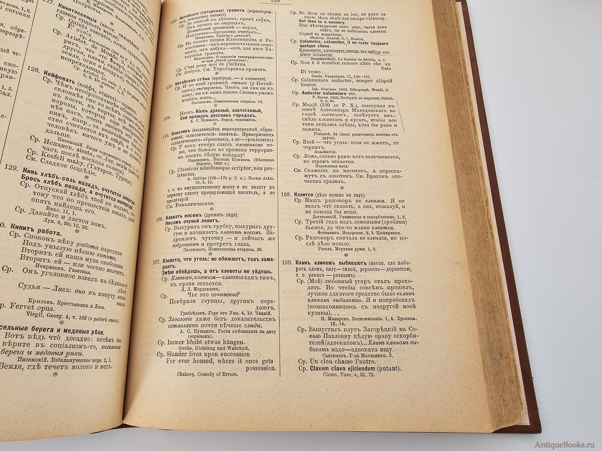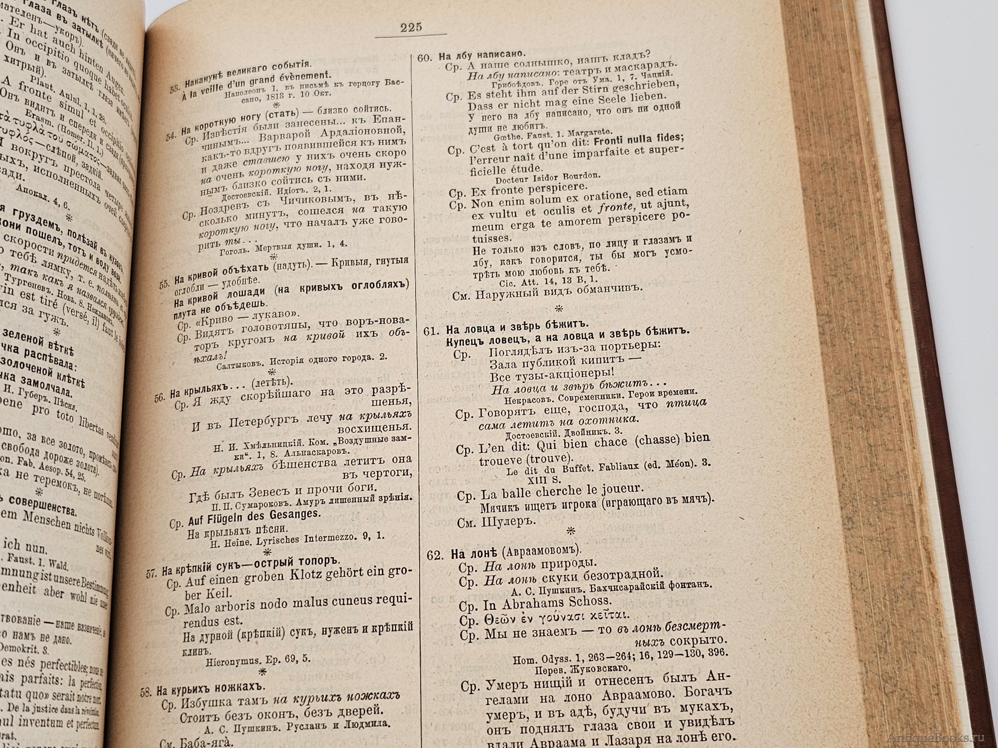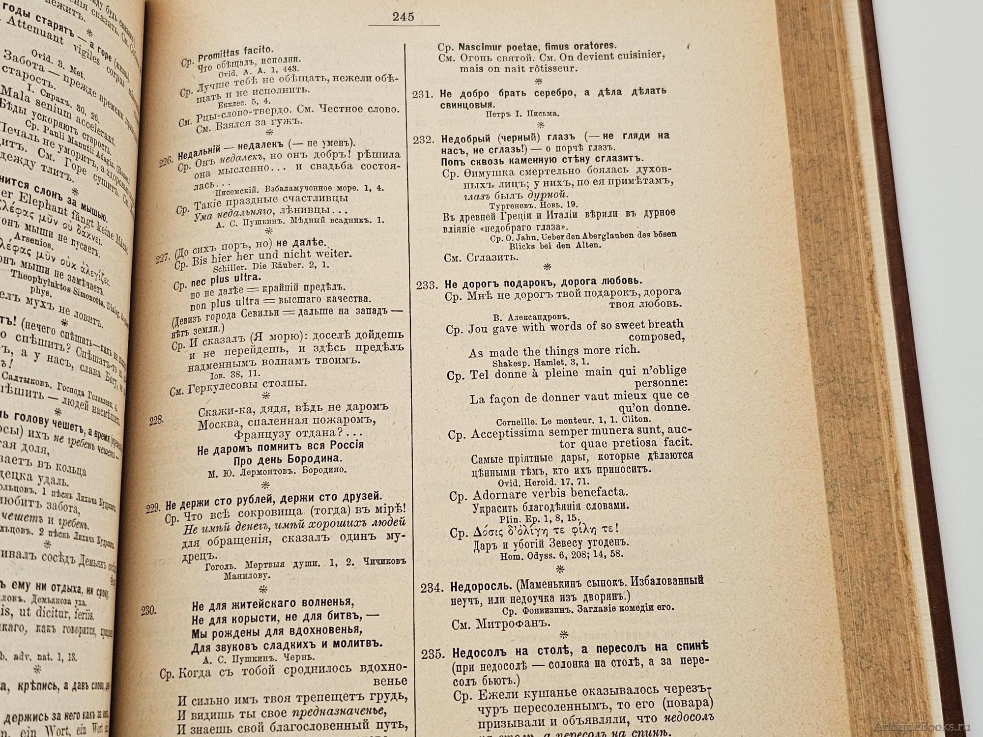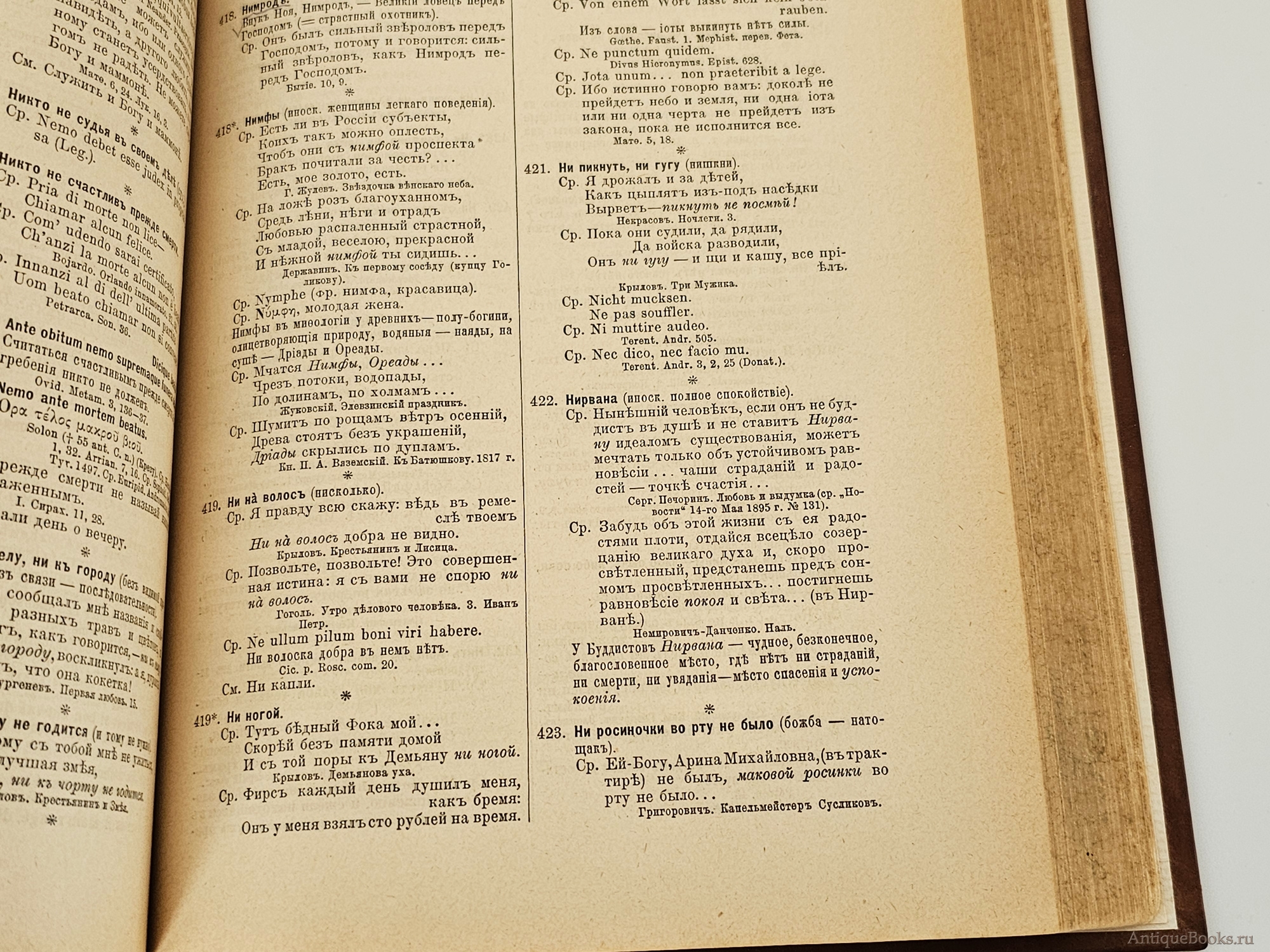 Фотографии предлагаемого издания "Ходячие и меткие слова. Сборник русских и иностранных цитат, пословиц, поговорок, пословичных выражений и отдельных слов (иносказаний)". М.И. Михельсон. С.-Петербург, типография Императорской Академии Наук, 1896 г.