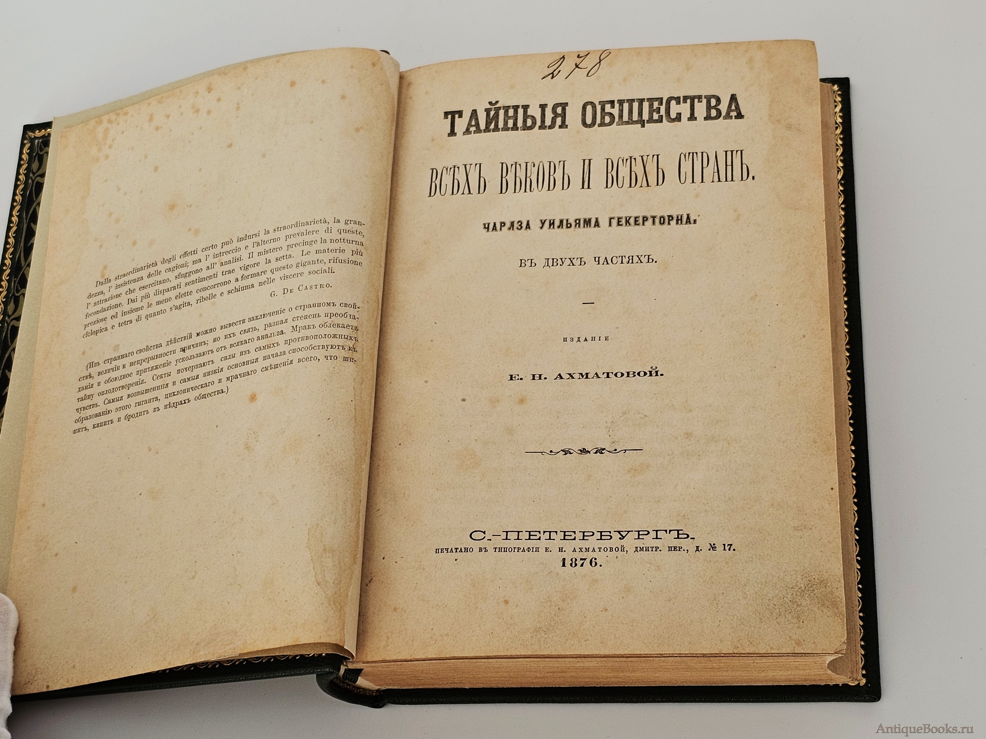 До появления в 1874 г. фундаментального труда Чарльза Уильяма Гекерторна, в Англии, да и во всей Европе не было ни одного объективного издания, посвященного истории, функционированию и целям тайных обществ — древних, средневековых и современных автору. Разрозненные сведения из английских, немецких, итальянских и французских документальных источников в течении многих лет были проанализированы и объединены Гекерторном в единый труд и существенно им дополнены.
