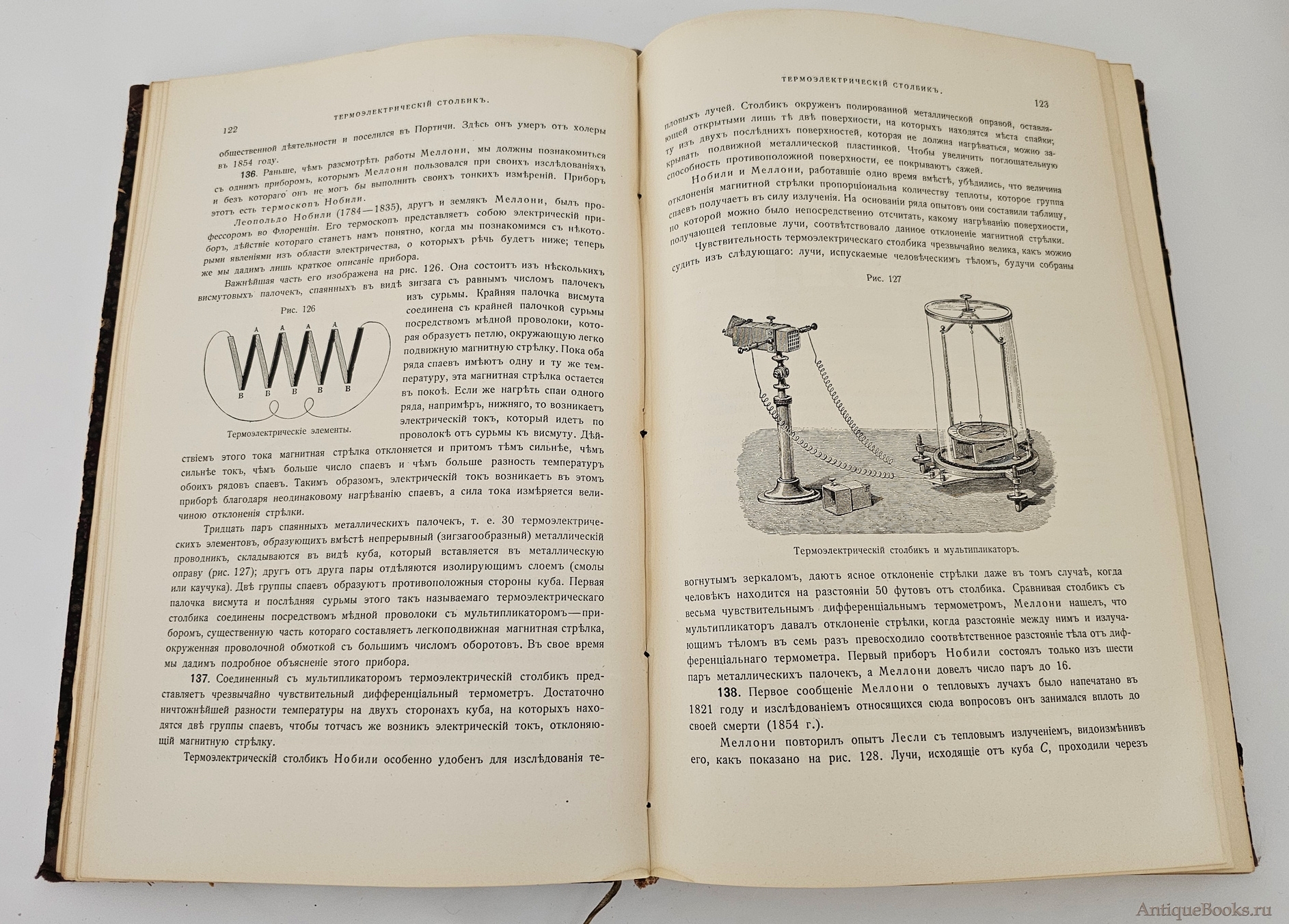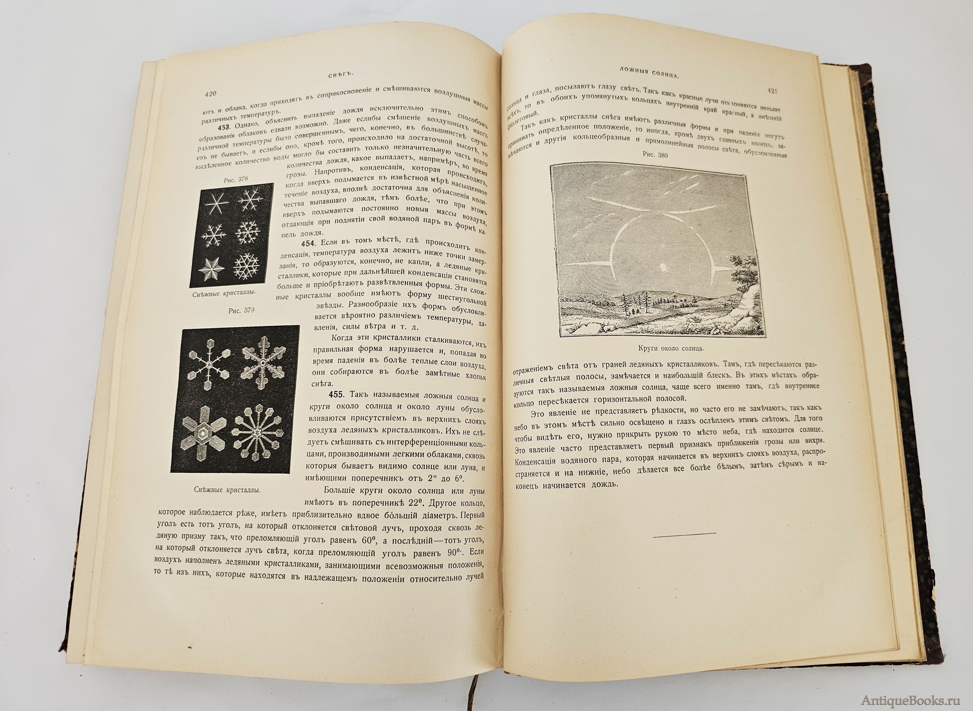 В двух старинных полукожаных переплетах с золотым тиснением. Увеличенный формат: 27x18 см.. Множество иллюстраций. Состояние очень хорошее. Пер. с нем. под ред. «Вестника Опытной Физики и Элементарной Математики»