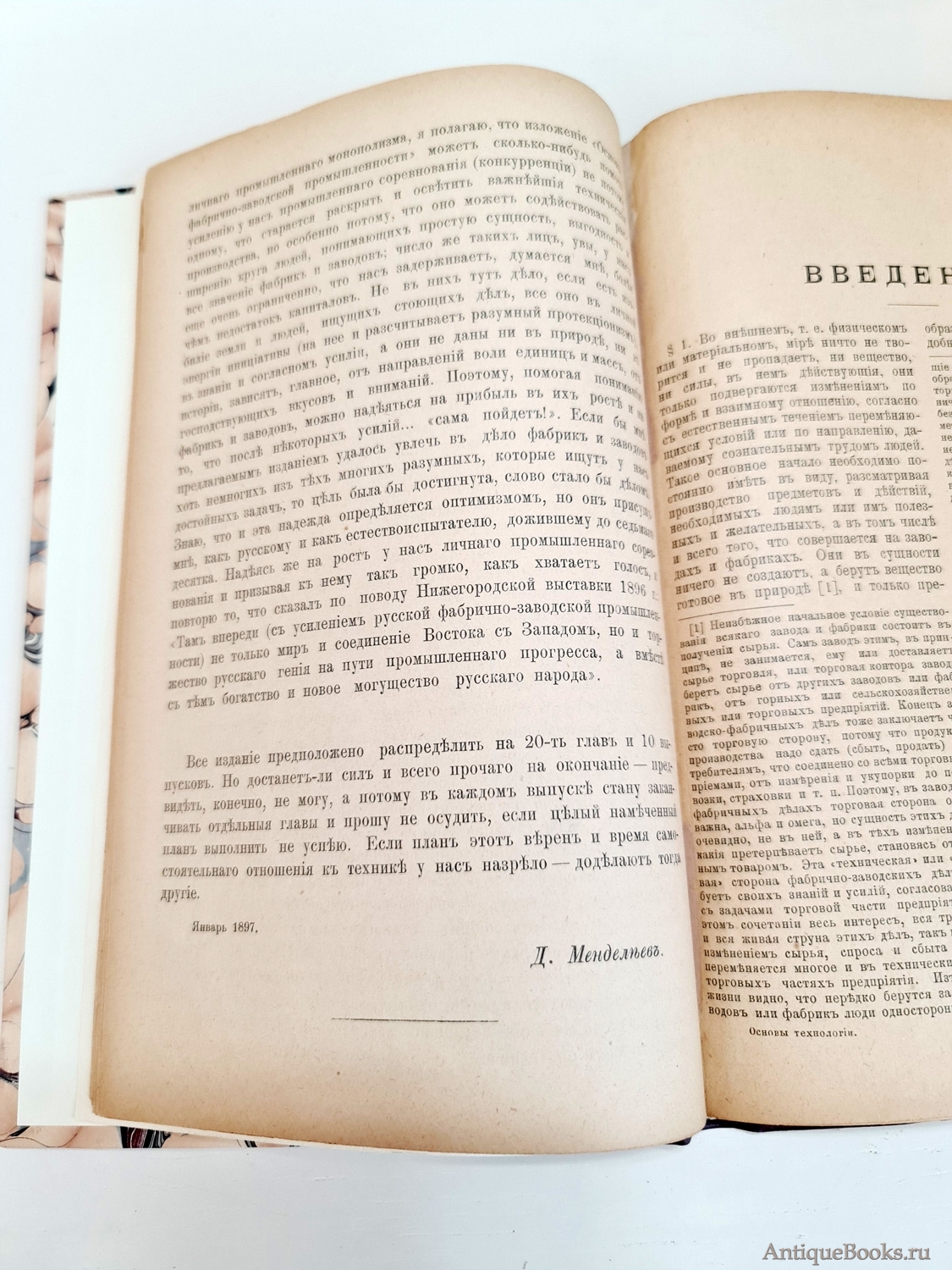 Фотографии предлагаемого издания "Основы фабрично-заводской промышленности. Выпуск 1-й". С.-Петербург, Издание Д.Менделеева, Типография В. Демкова, 1897 г.
