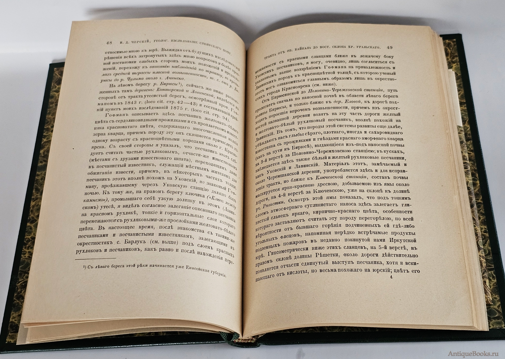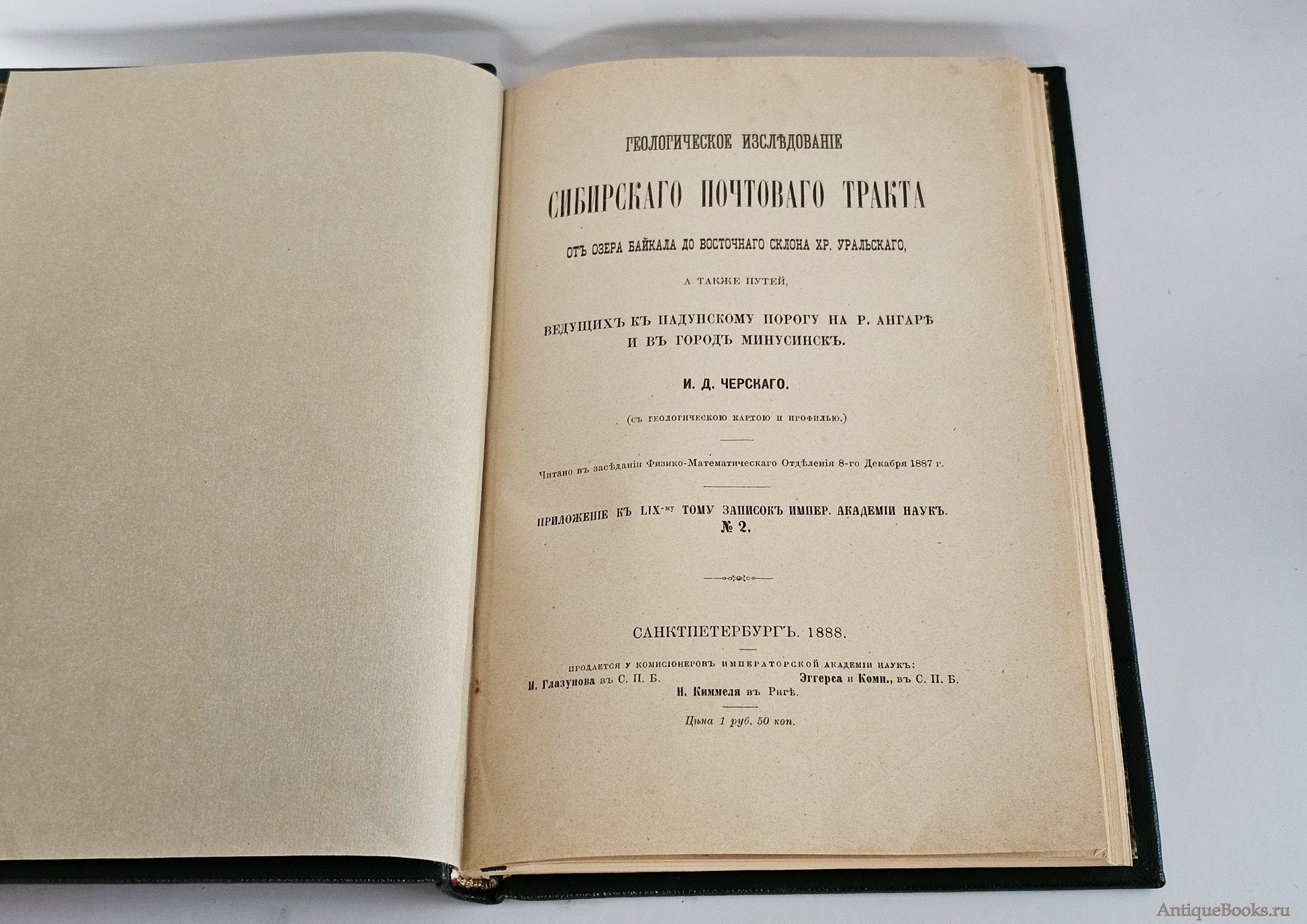 Фотографии предлагаемого издания "Геологическое исследование Сибирского почтового тракта от озера Байкала до восточного склона хр. Уральского, а также путей, ведущих к Падунскому порогу на р. Ангаре и в город Минусинск". [сочинение] И. Д. Черского. Санкт-Петербург : типография Академии наук, 1888 г.