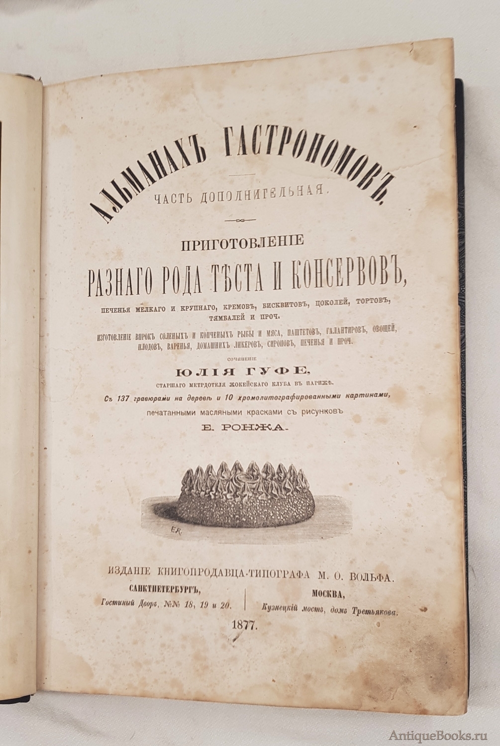 В 1877 году М.О. Вольф выпустил второе и последнее издание «Альманаха гастрономов» И. Радецкого; в том же 1877 году в качестве дополнительной части к «Альманаху» была отпечатана книга Ю. Гуфе «Приготовление разного рода теста и консервов».