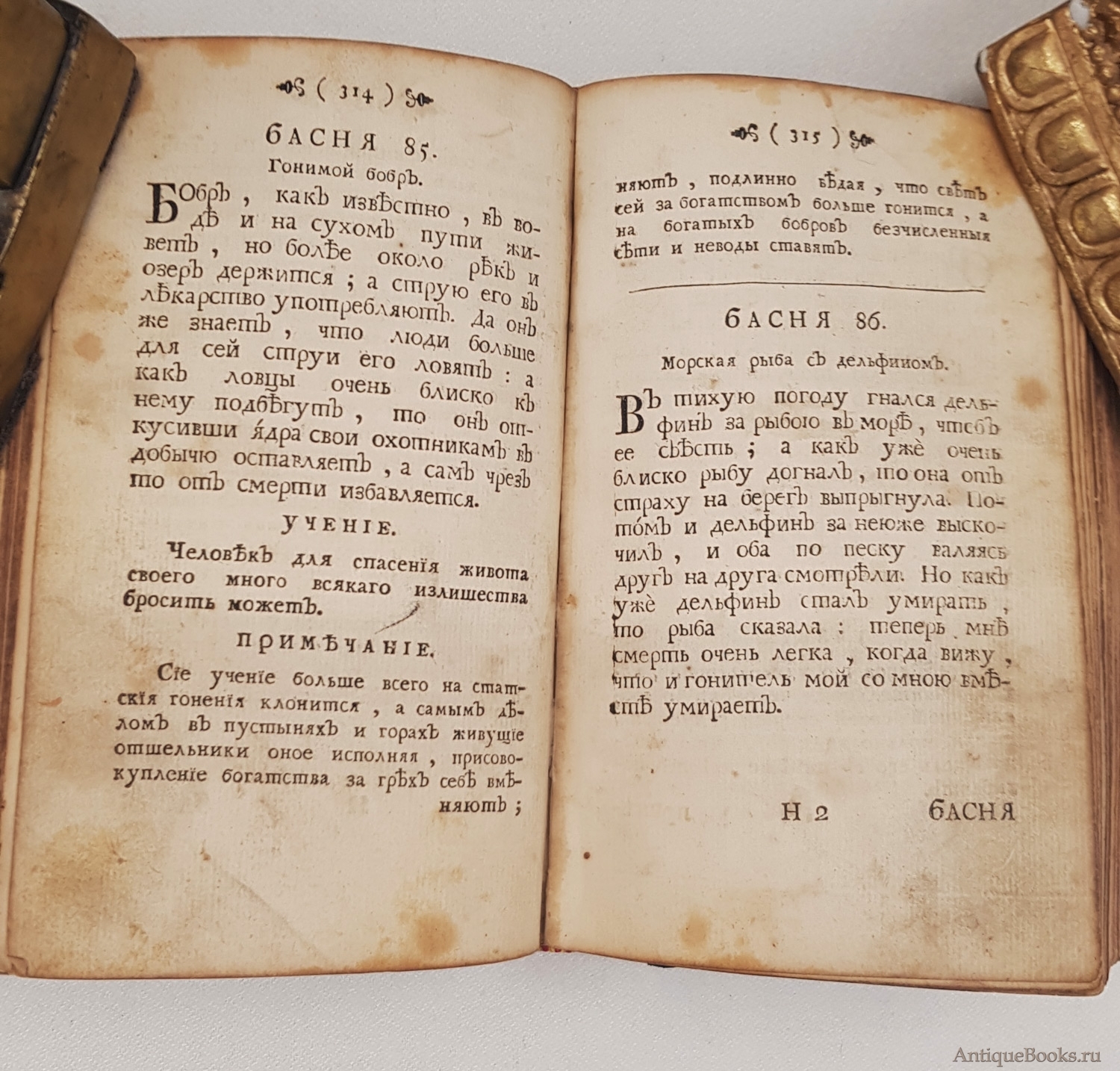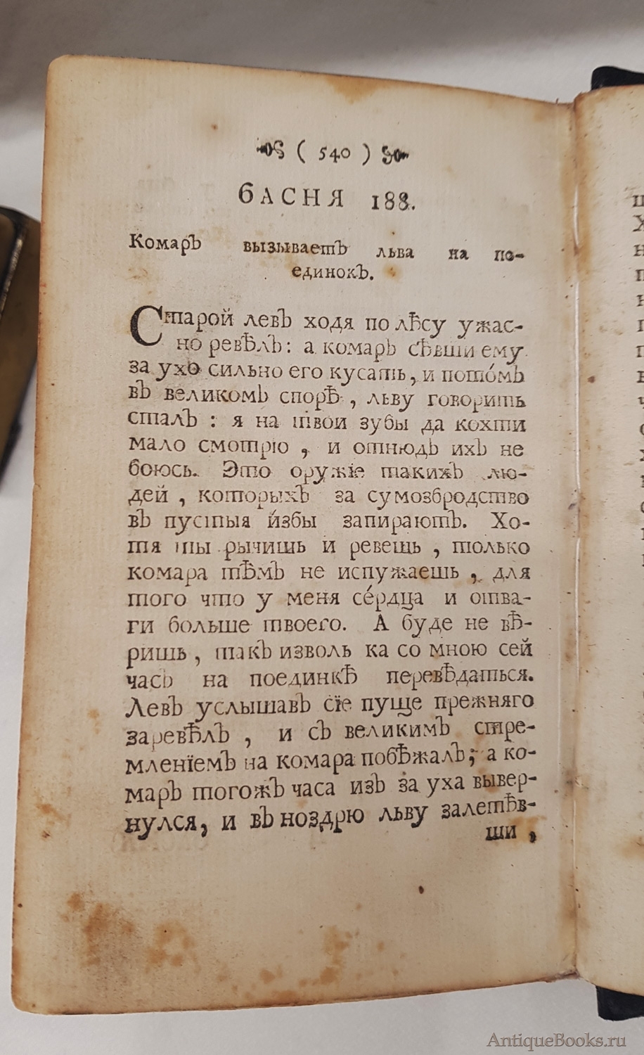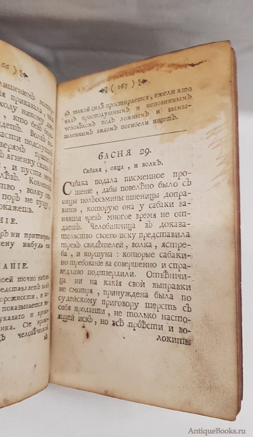 Фотографии предлагаемого издания "Езоповы басни с нравоучением и примечаниями Рожера Летранжа". Эзоп. в Санктпетербурге При Академии наук, 1760 г.