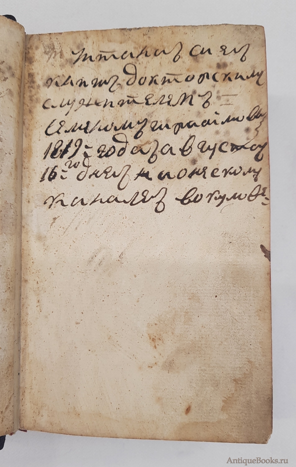 Книга в изящном старинном цельнокожаном переплете с богатым золотым тиснением по корешку и крышке. Переплет конца XVIII века.