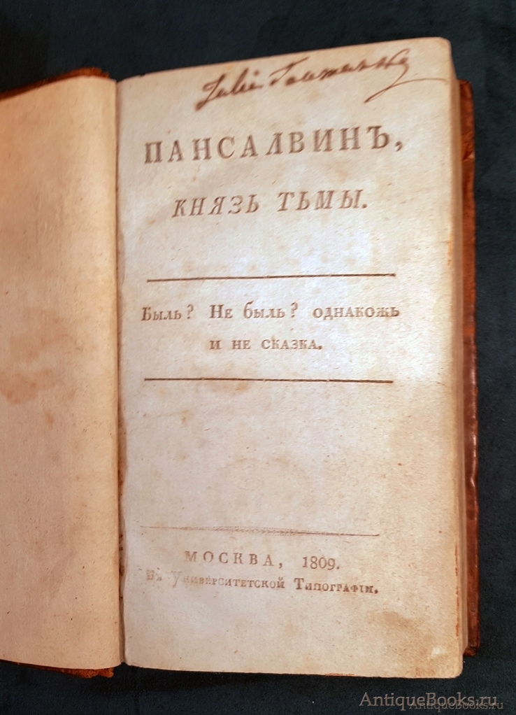 Фотографии предлагаемого издания "Пансалвин, князь тьмы. Быль? Не быль? Однакожь и не сказка". И.Ф.Э. Альбрехт. Москва, В Университетской Типографии, 1809 г.