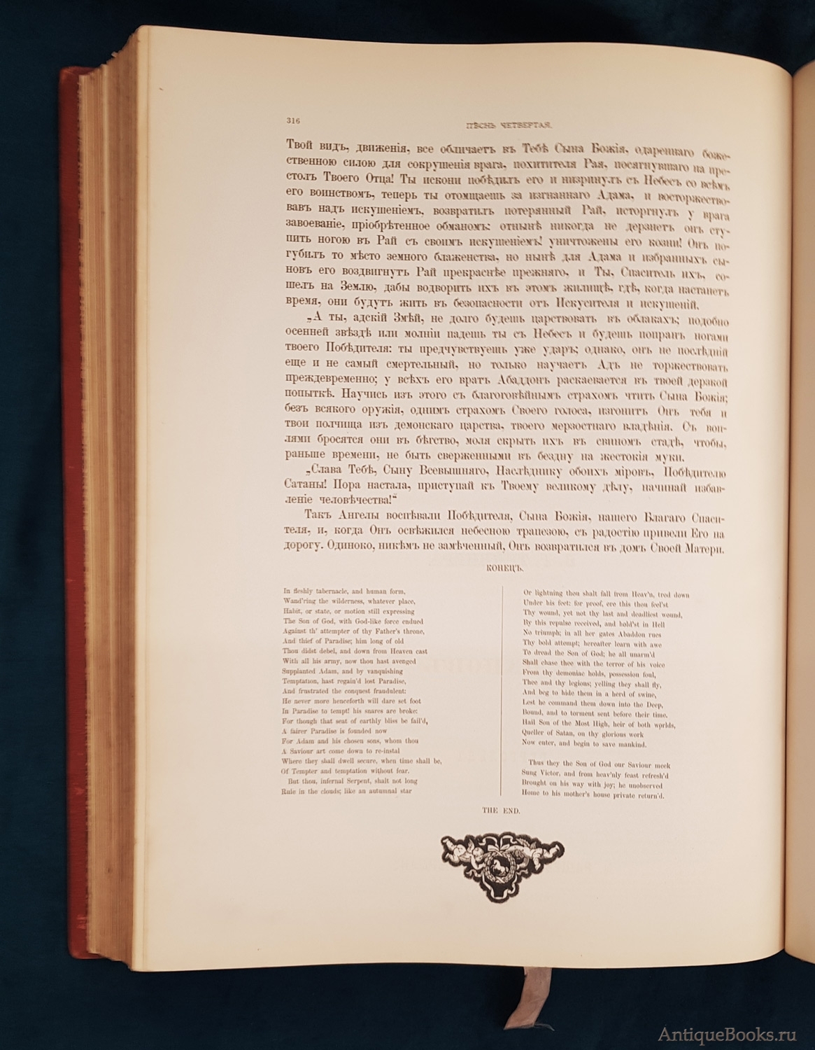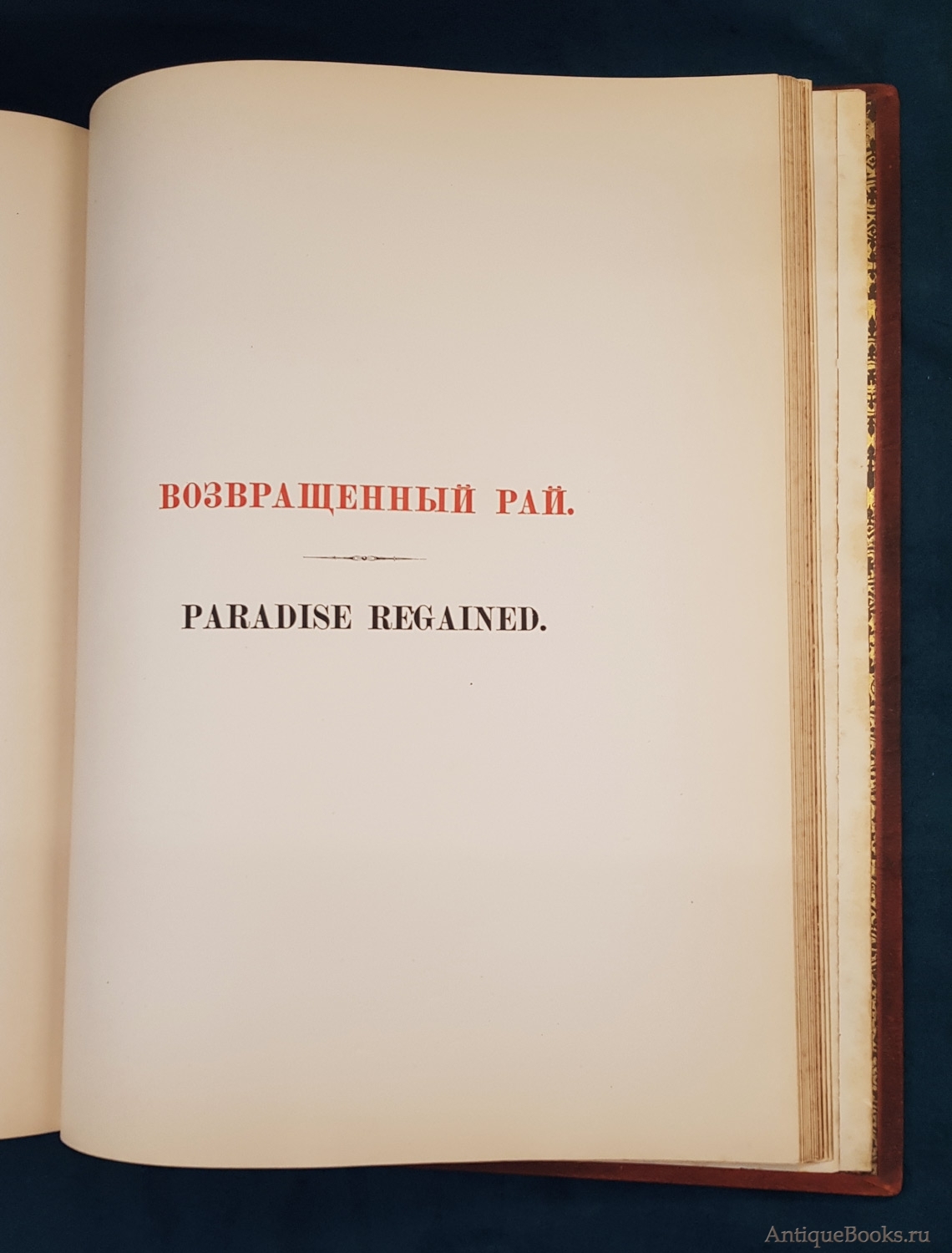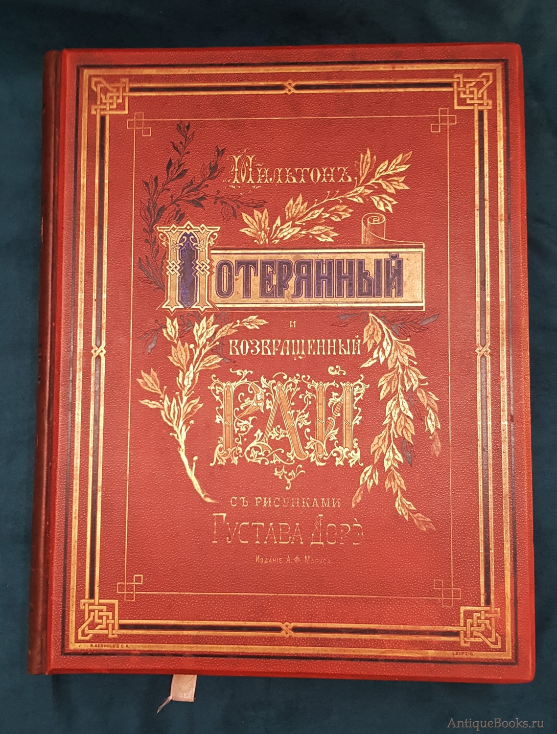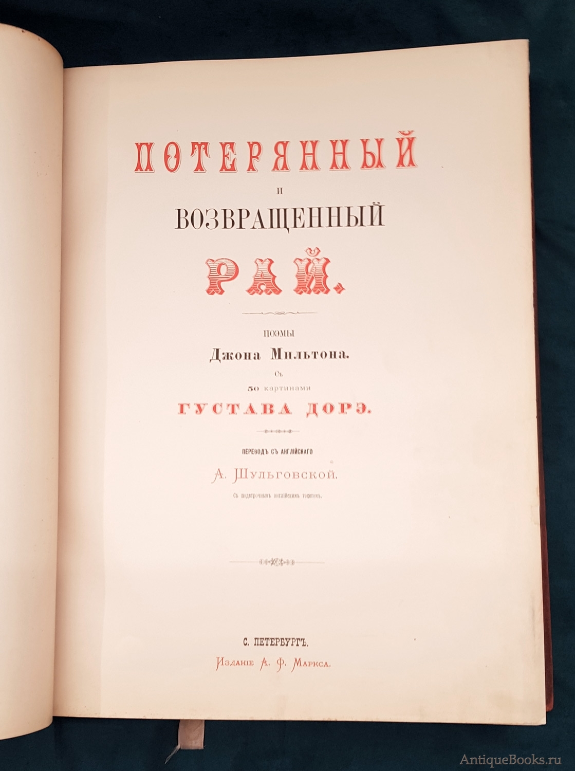 Фотографии предлагаемого издания "Потерянный и Возвращенный рай". Дж. Мильтон. СПб. Издание А.Ф. Маркса, 1878 г.