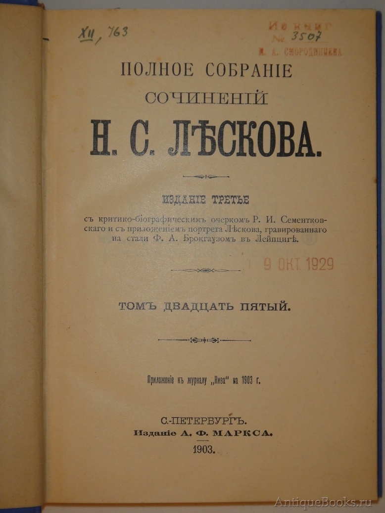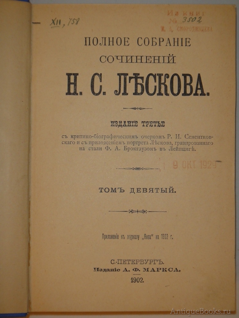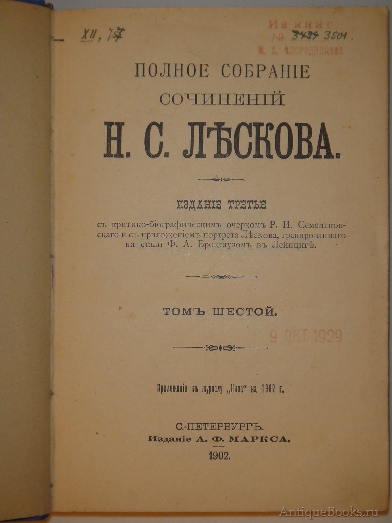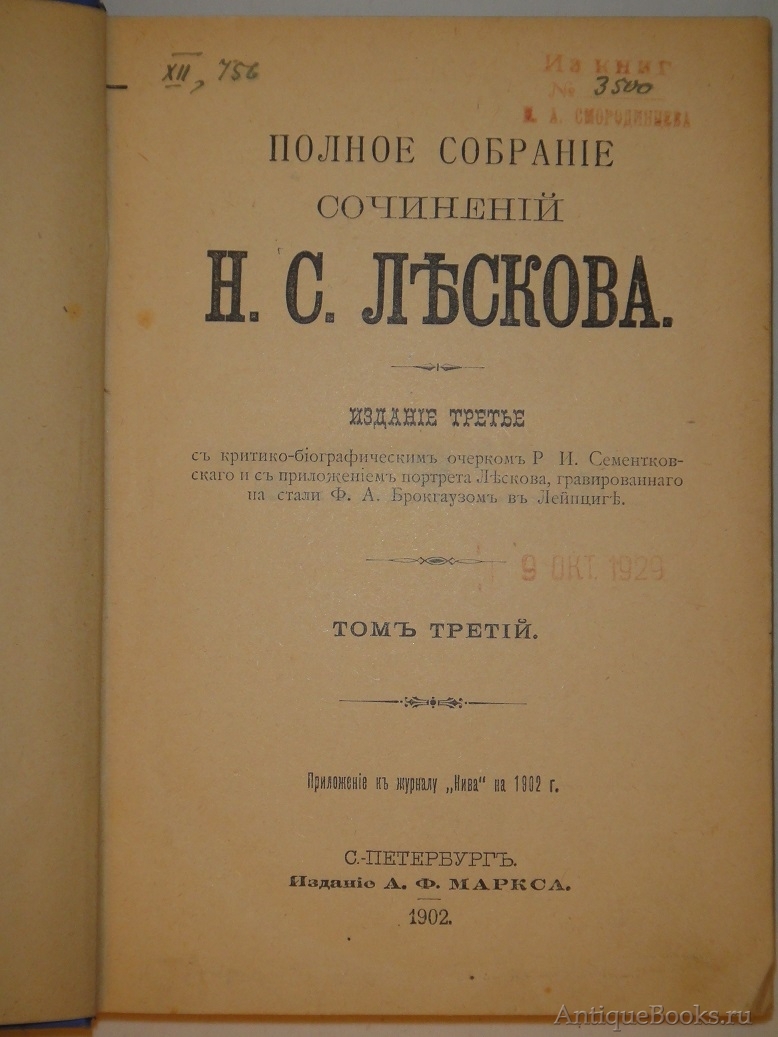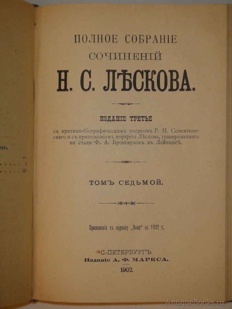 Из всех дореволюционных собраний сочинений Н.С.Лескова - настоящее издание является самым полным и лучшим.