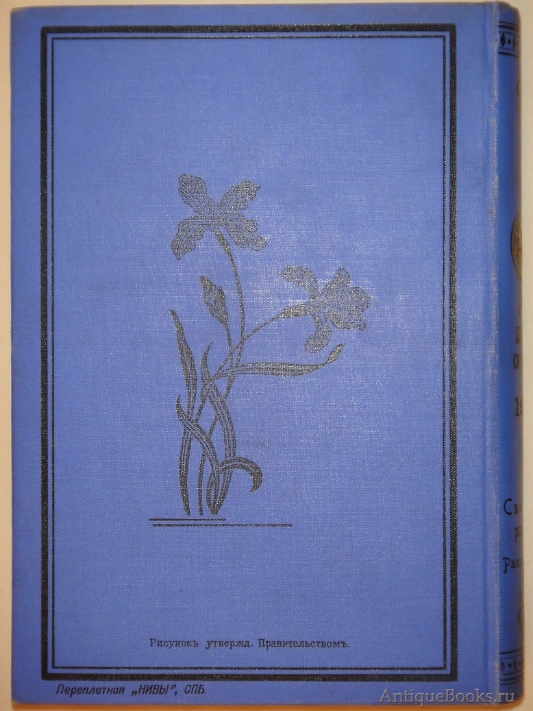 Экземпляр в двенадцати великолепных издательских коленкоровых перелётах с золотым и цветным художественным тиснением на корешках и крышках, выполненных в стиле модерн. Изящные составные форзацы с мотивами цветочного орнамента. Краплёный обрез.