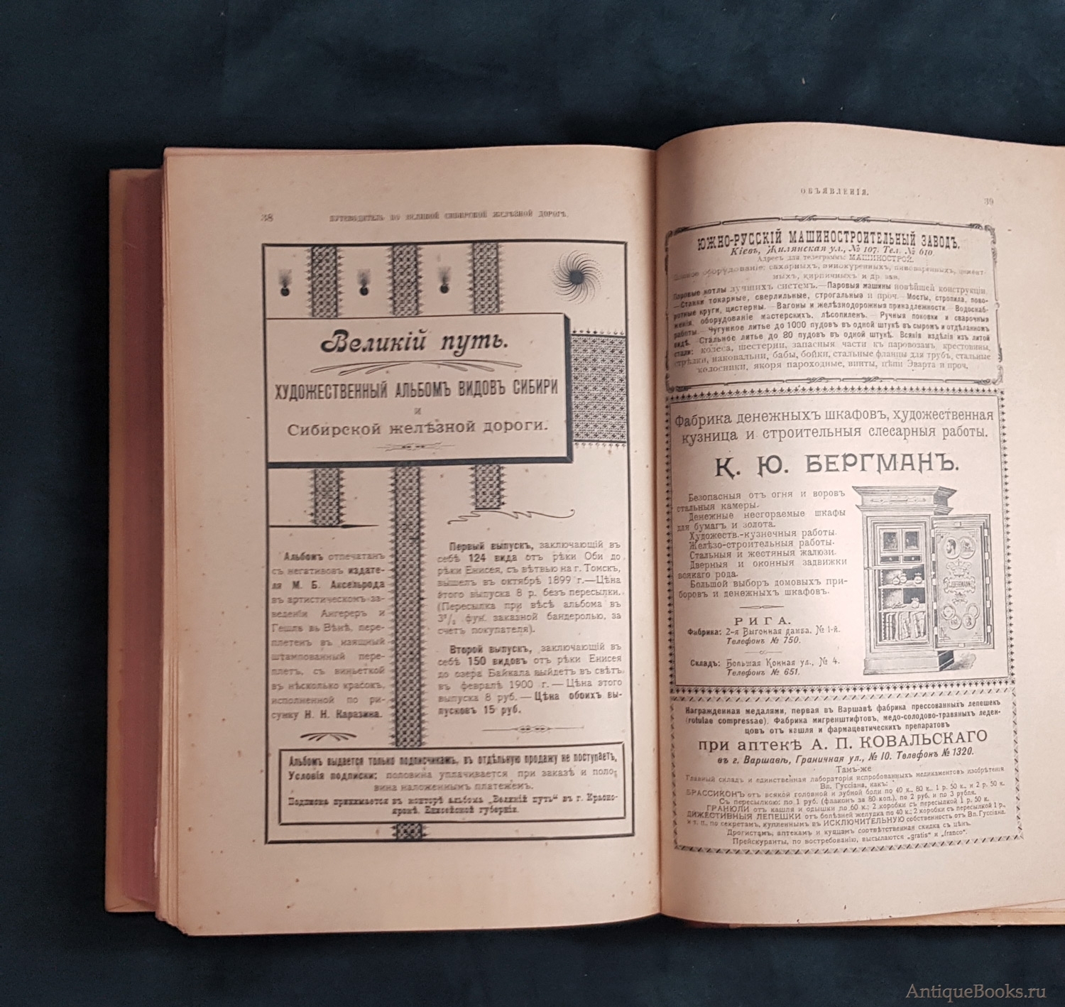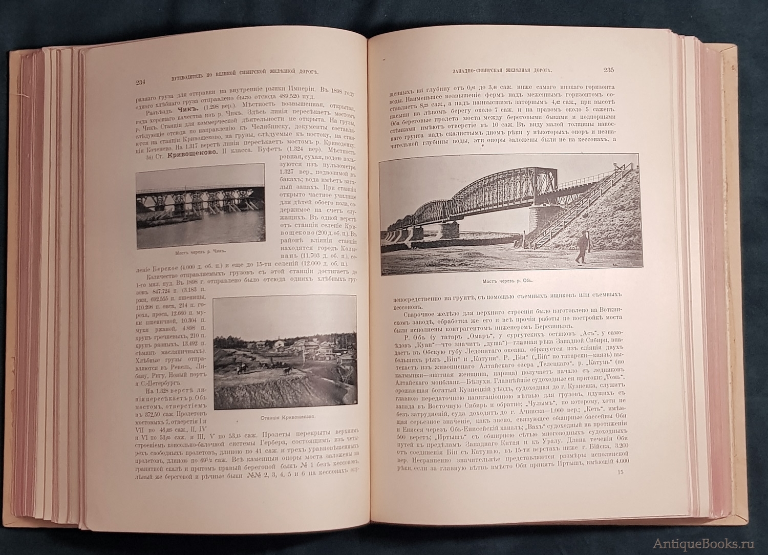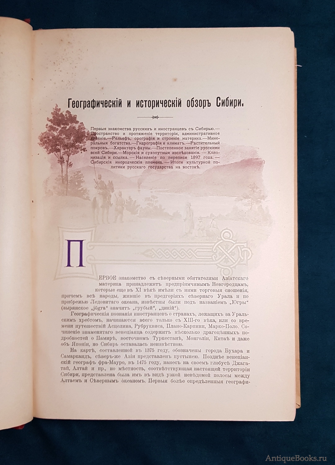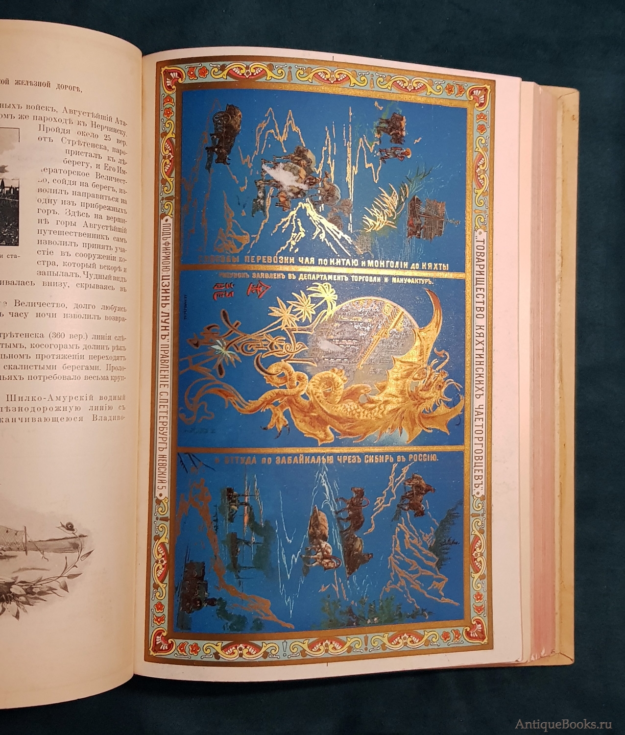 Полный комплект. С 2 фототипиями, 360 фото-типогравюрами, 4 картами Сибири и 3 планами городов. 28, V, 600, 40 стр, 2 л. порт., илл. 26 × 18,5 см. В издательском составном иллюстрированном переплёте. Книга в полукожаном переплете. Корешок отреставрирован, крышка сохранена издательская. Формат: 25,5x18,5 см. Состояние очень хорошее.