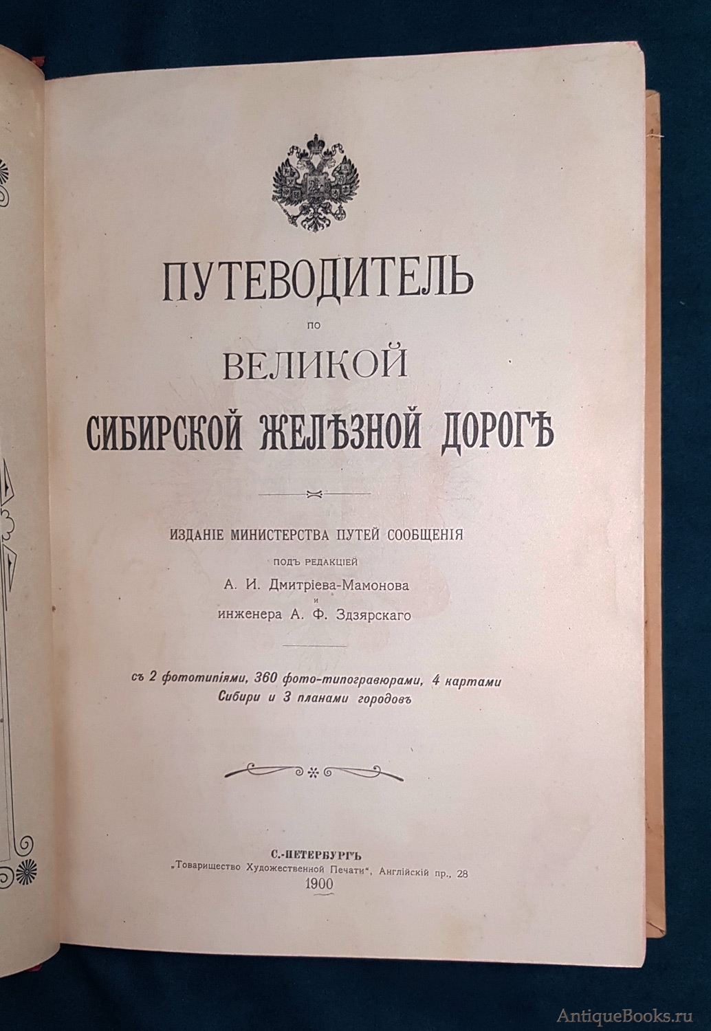 "Путеводитель по Великой Сибирской железной дороге" Под редакцией А.И. Дмитриева-Мамонова и инженера А.Ф. Здзярского С.-Петербург. "Товарищество художественной печати", Английский пр., 1900 г.