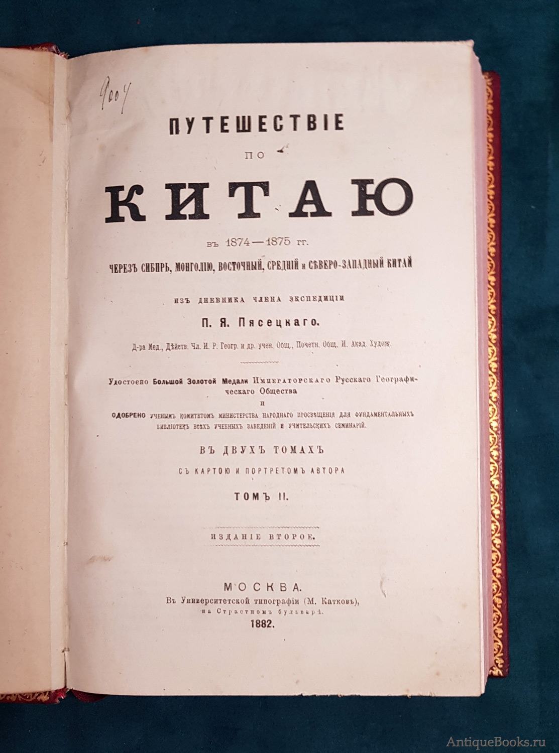 "Путешествие по Китаю в 1874-1875 гг. В 2-х томах" П.Я. Пясецкий Москва, Университетская типография, 1882 г.