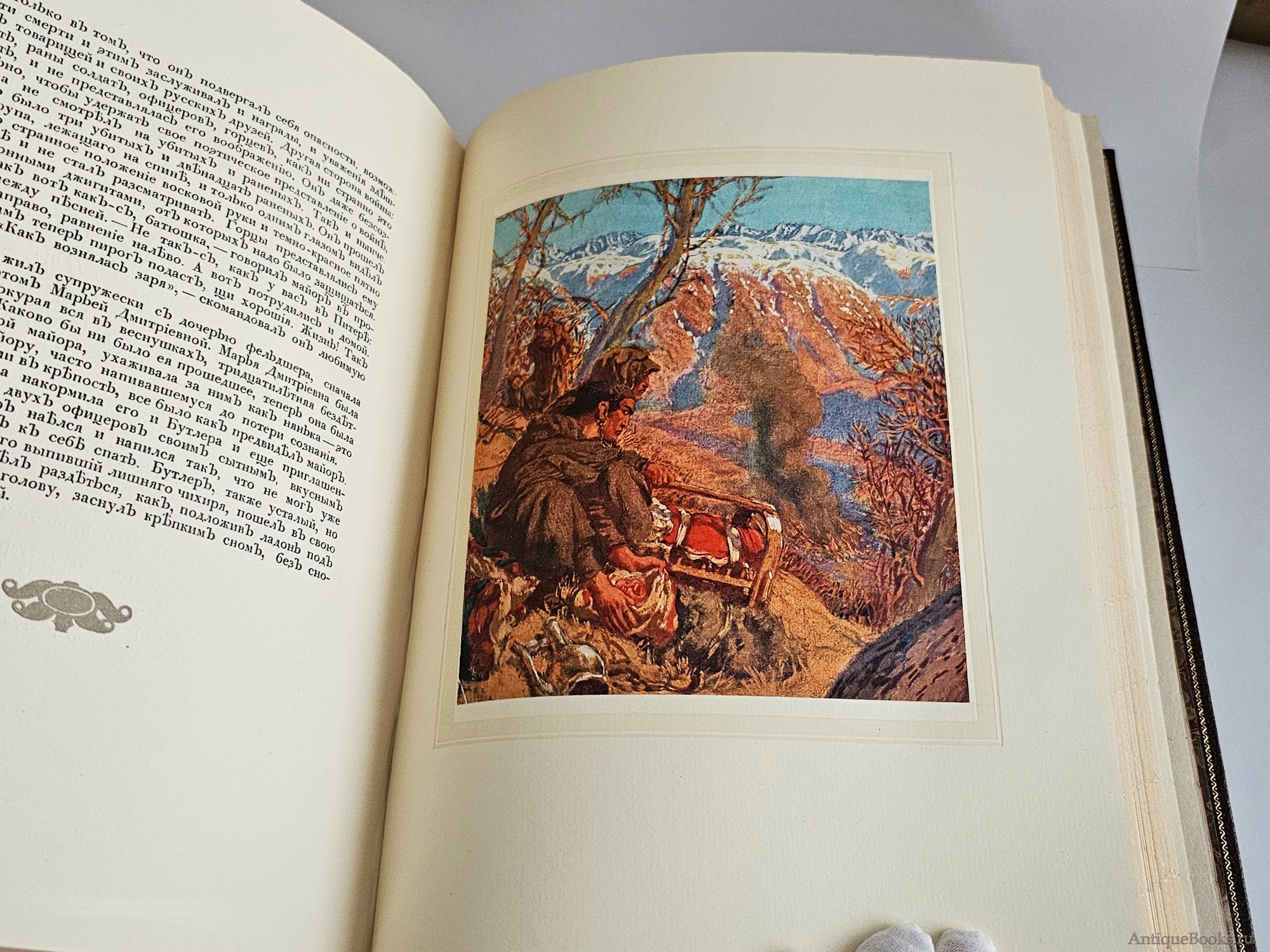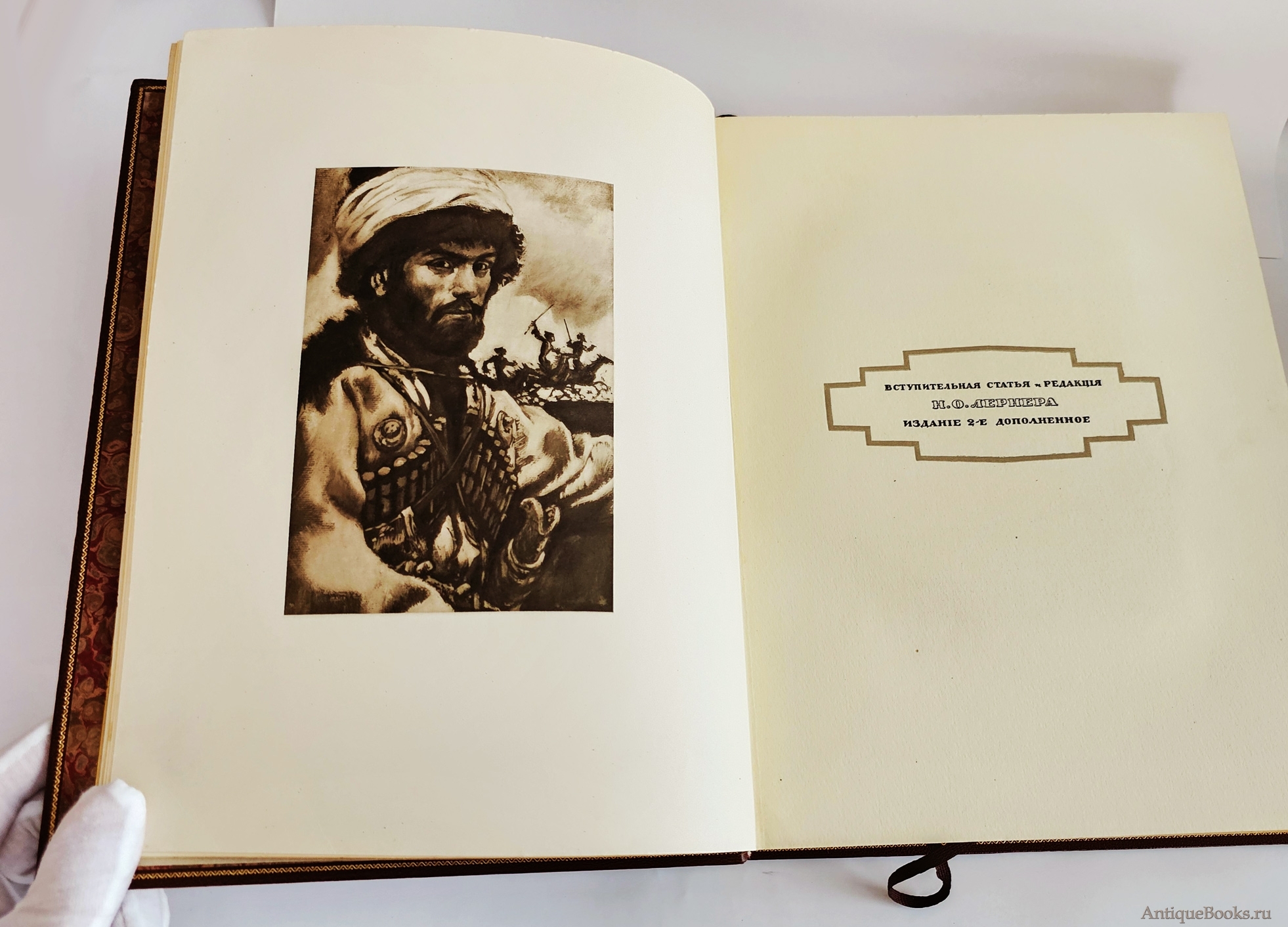 Уникальная антикварная книга из раздела «Классика русской литературы» - издание повести Льва Николаевича Толстого "Хаджи-Мурат". Это подарочное библиофильское издание, отпечатанное на плотной бумаге верже, с множеством иллюстраций работы художника Евгения Евгеньевича Лансере (1875-1946), выполненных, в том числе в цвете, в технике линогравюры, ксилографии и цинкографии. Книга была издана поставщиком Императорского Двора Товариществом Р.Голике и А.Вильборг, специализировавшимся на выпуске роскошных подарочных изданий.