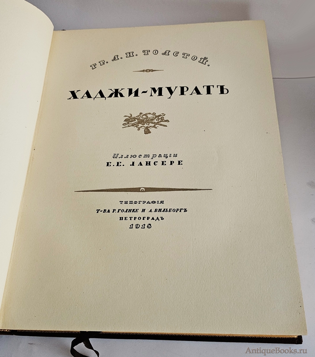 Фотографии предлагаемого издания "Хаджи - Мурат. С иллюстрациями Е.Е. Лансере". Л.Н. Толстой. Издание Т-ва Р.Голике и А.Вильборг, 1918 г.