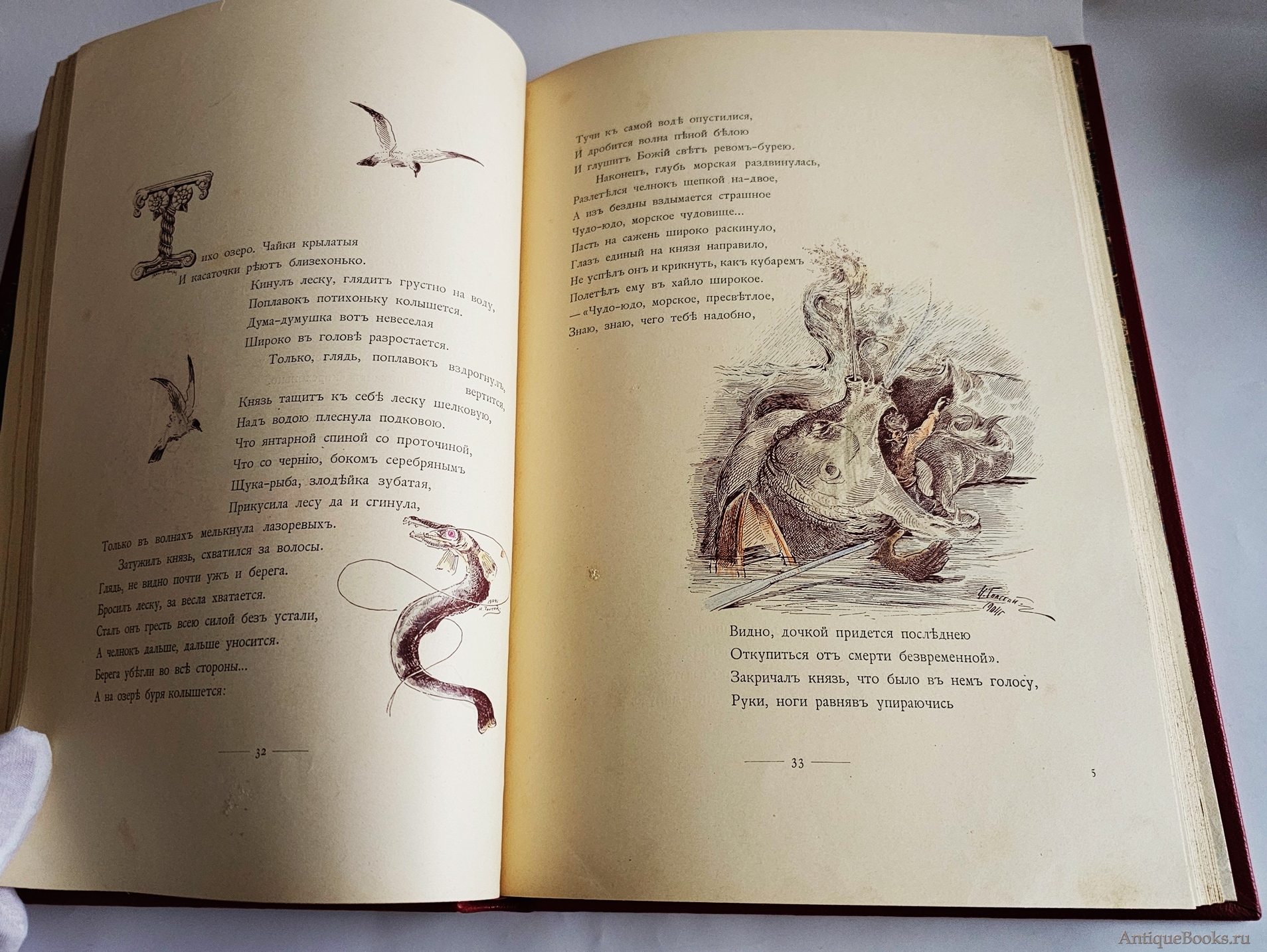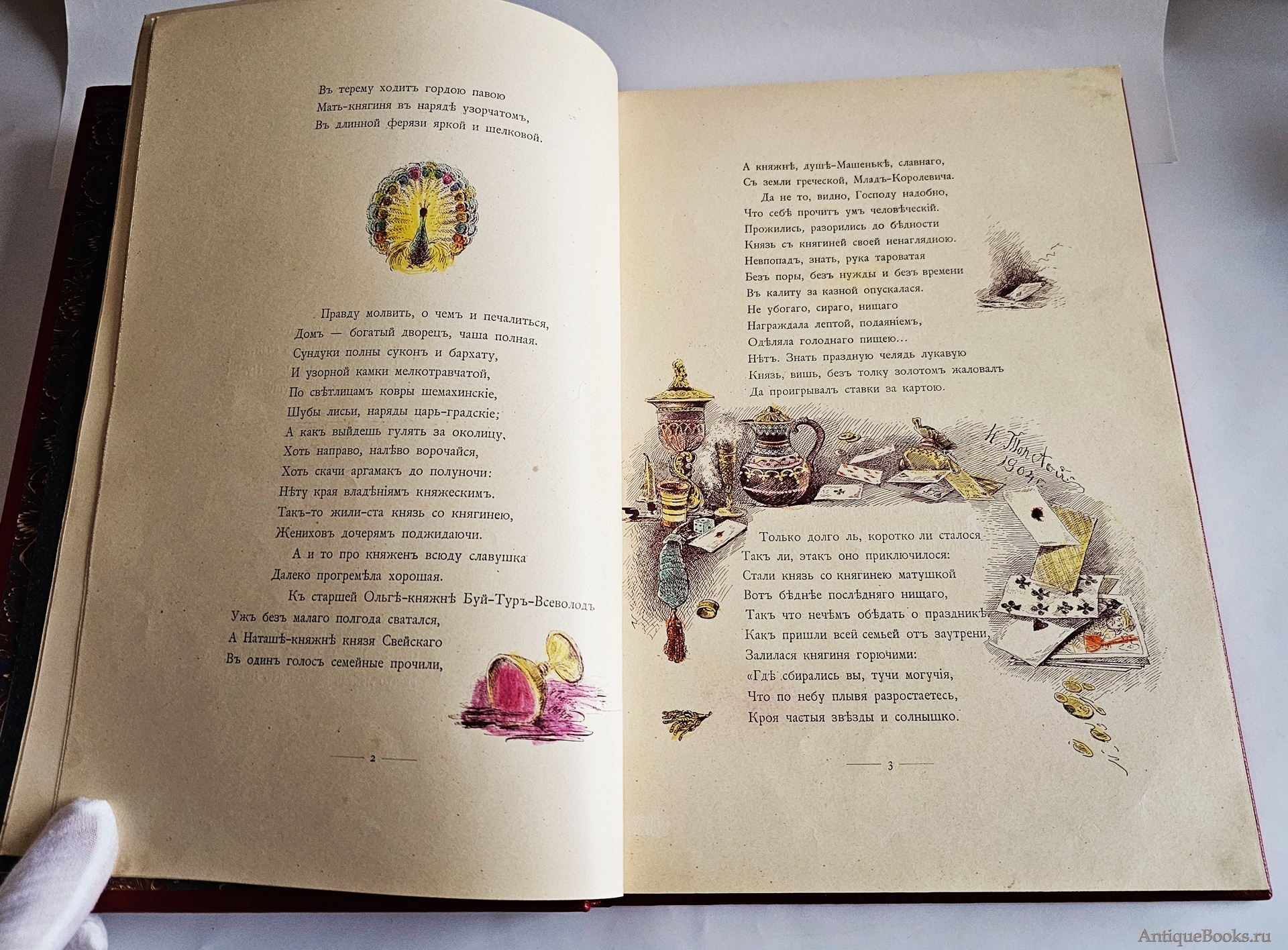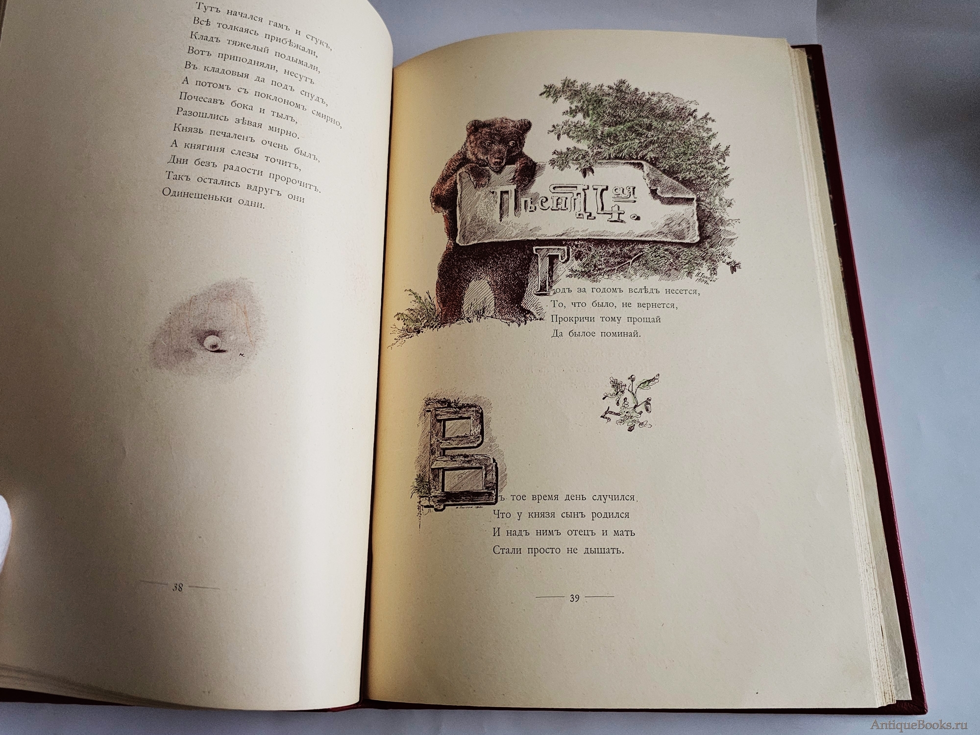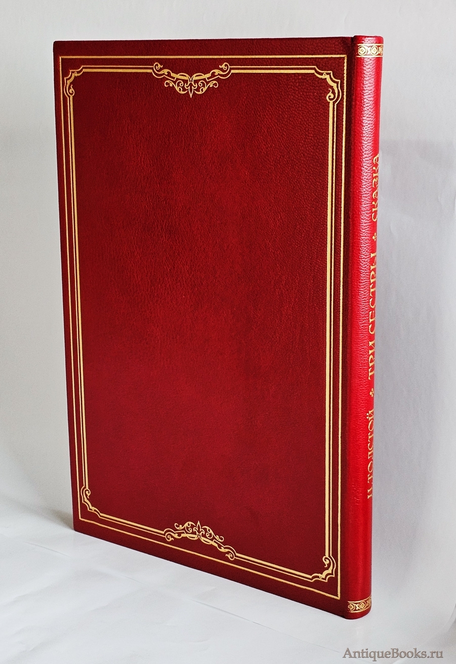 Н. ТолстойКнига в цельнокожаном современном переплете с роскошным золотым тиснением. Форзацы - "павлинье перо". Большой формат: 31x22 см. Бумага качественная плотная. Книга богато проиллюстрирована. Рисунки и заставки самого автора. [8], 116 стр. Под переплетом сохранена издательская иллюстрированная обложка.Цена: 70 000 руб.